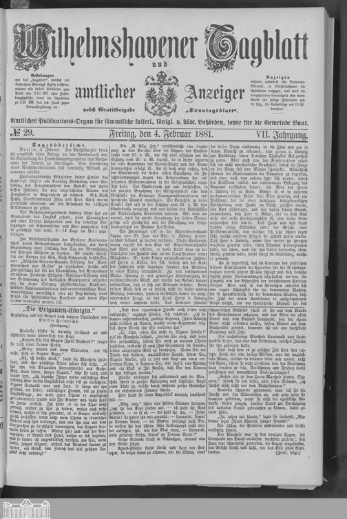 Wilhelmshavener Tageblatt und amtlicher Anzeiger. 1881-1909