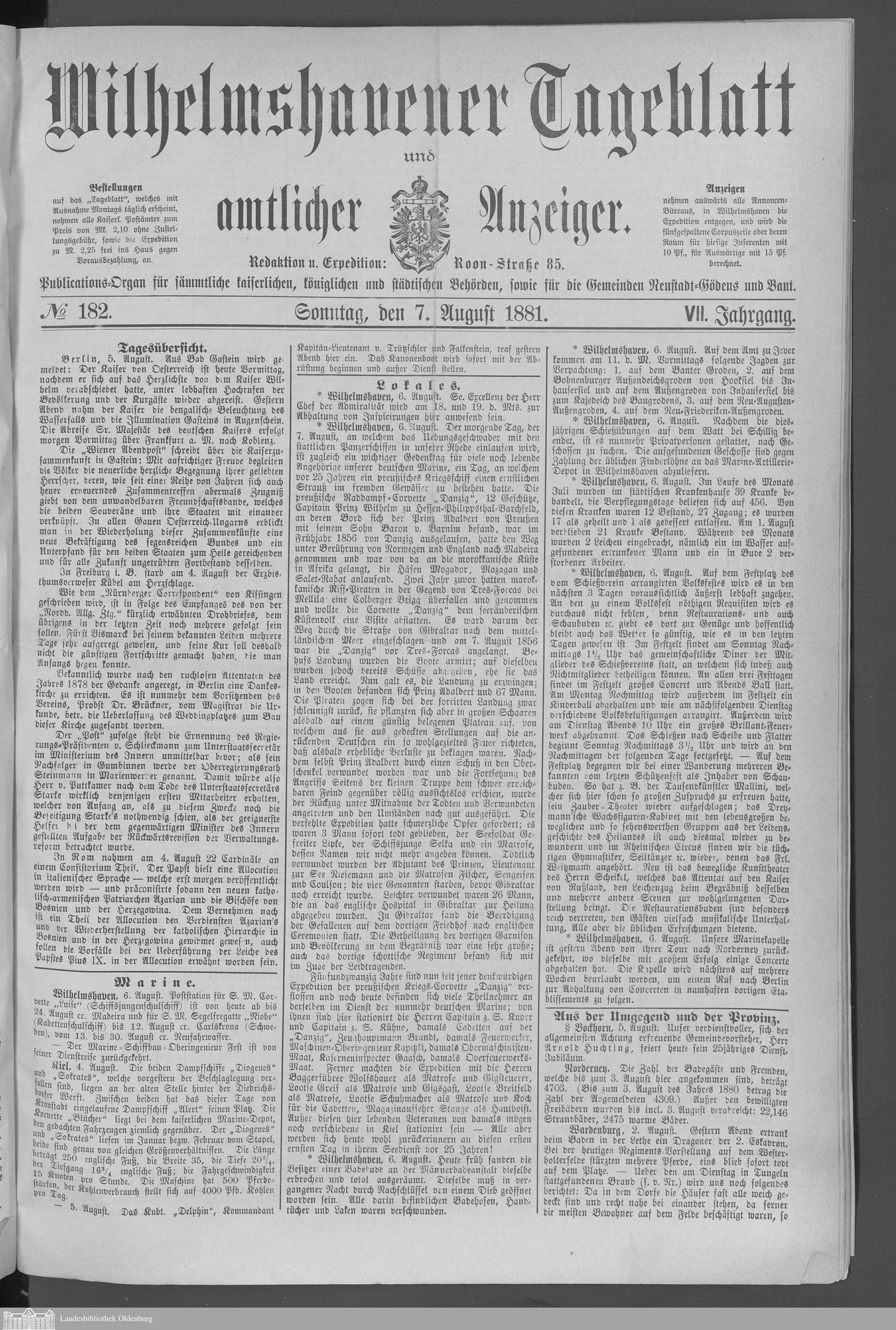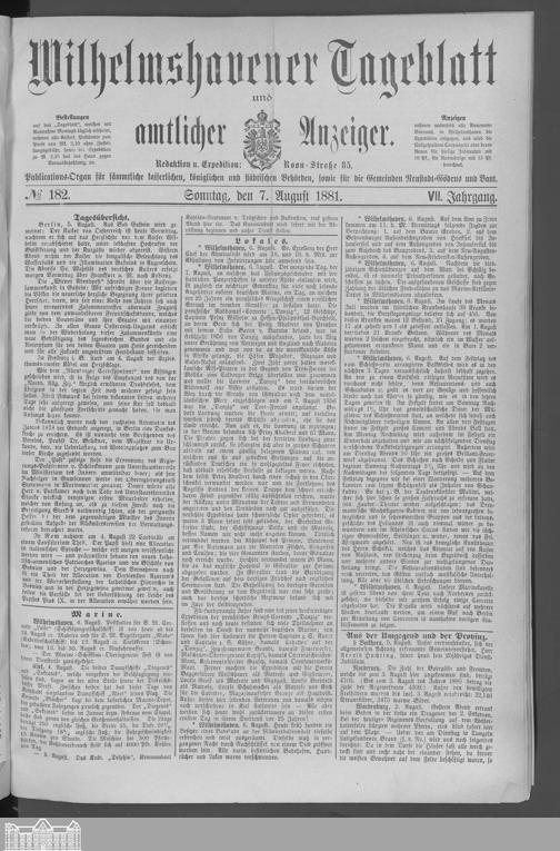 Wilhelmshavener Tageblatt und amtlicher Anzeiger. 1881-1909