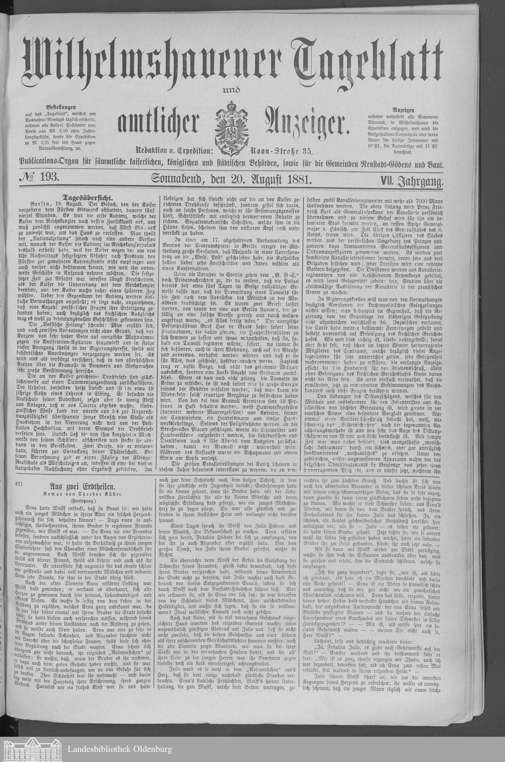 Wilhelmshavener Tageblatt und amtlicher Anzeiger. 1881-1909
