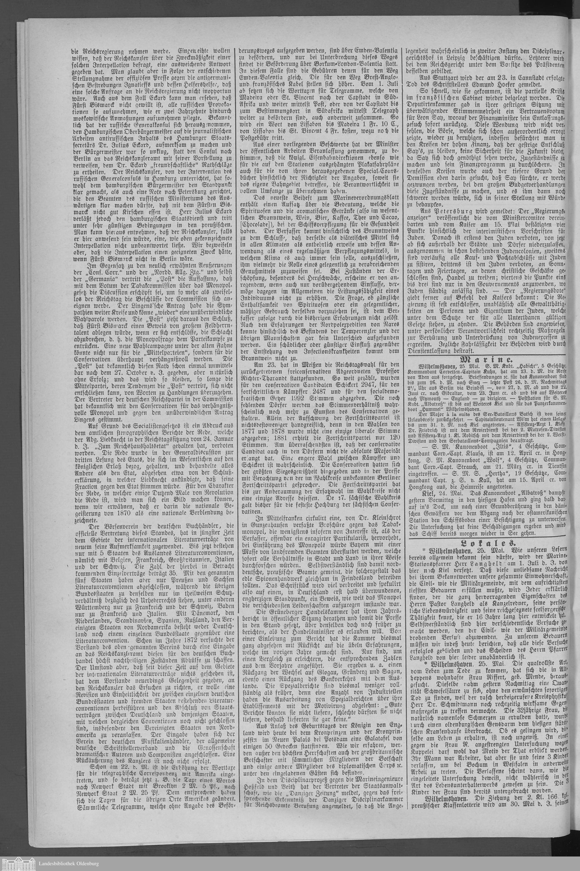 Wilhelmshavener Tageblatt und amtlicher Anzeiger. 1881-1909