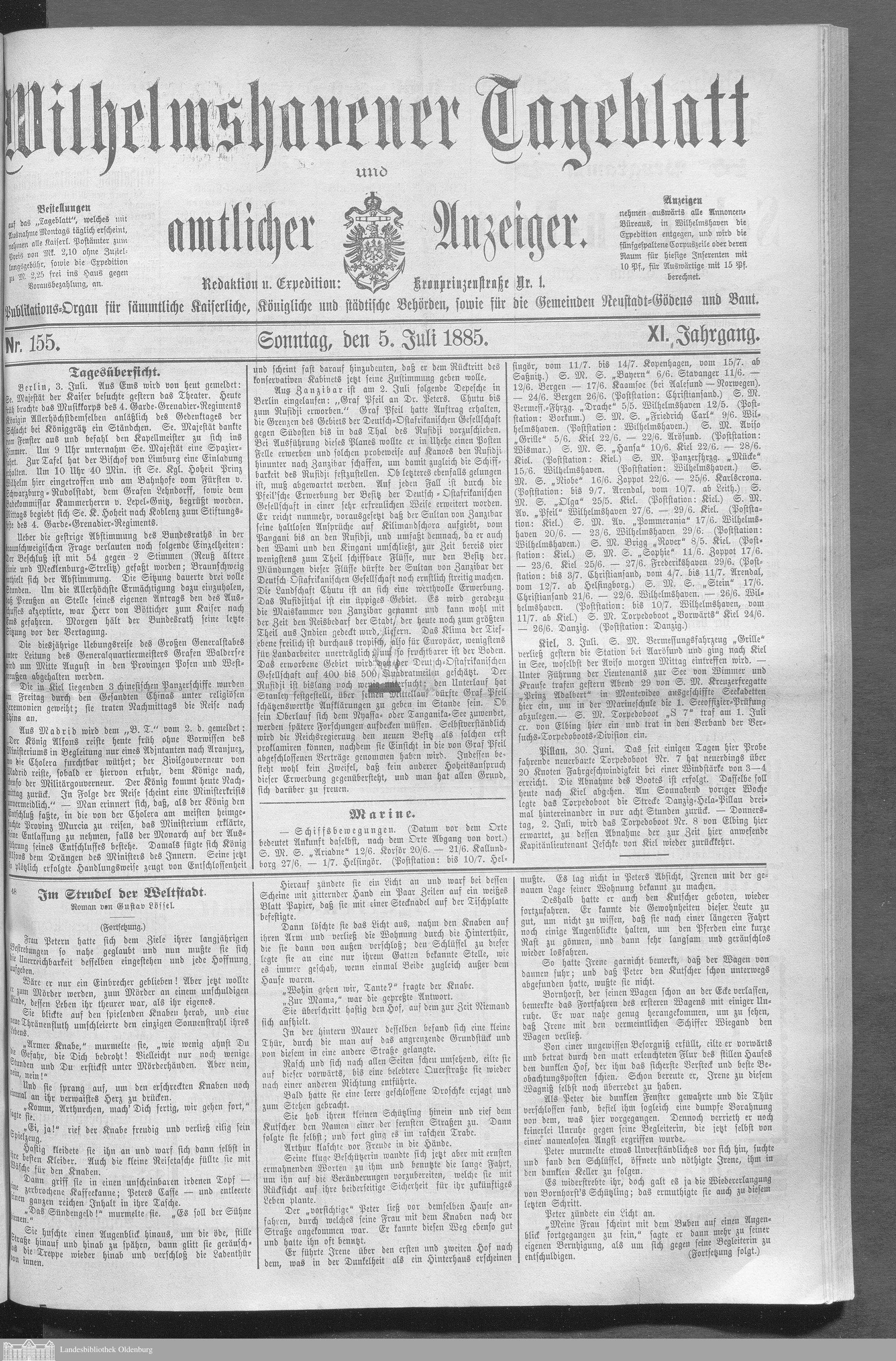 Wilhelmshavener Tageblatt und amtlicher Anzeiger....