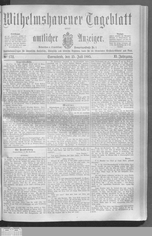 Wilhelmshavener Tageblatt und amtlicher Anzeiger. 1881-1909