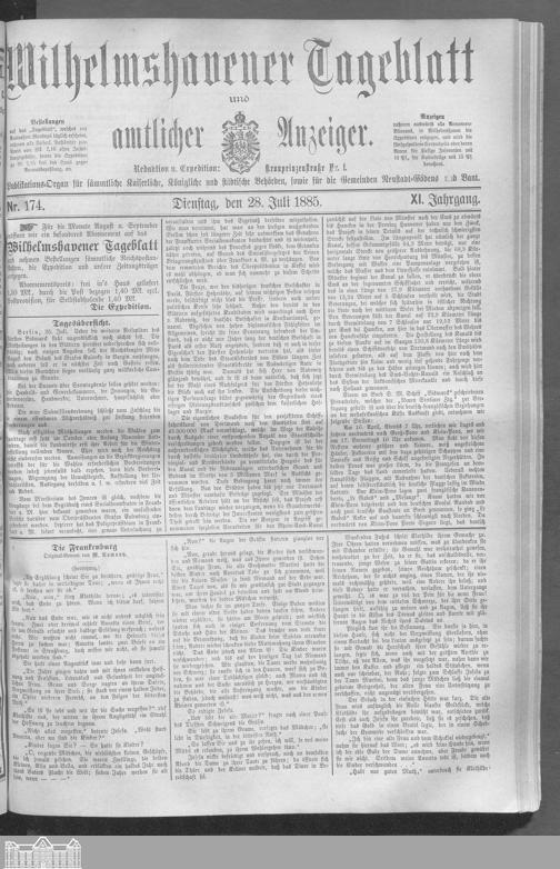 Wilhelmshavener Tageblatt und amtlicher Anzeiger. 1881-1909