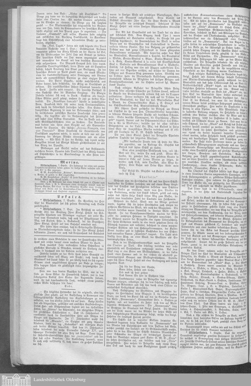 Wilhelmshavener Tageblatt und amtlicher Anzeiger. 1881-1909