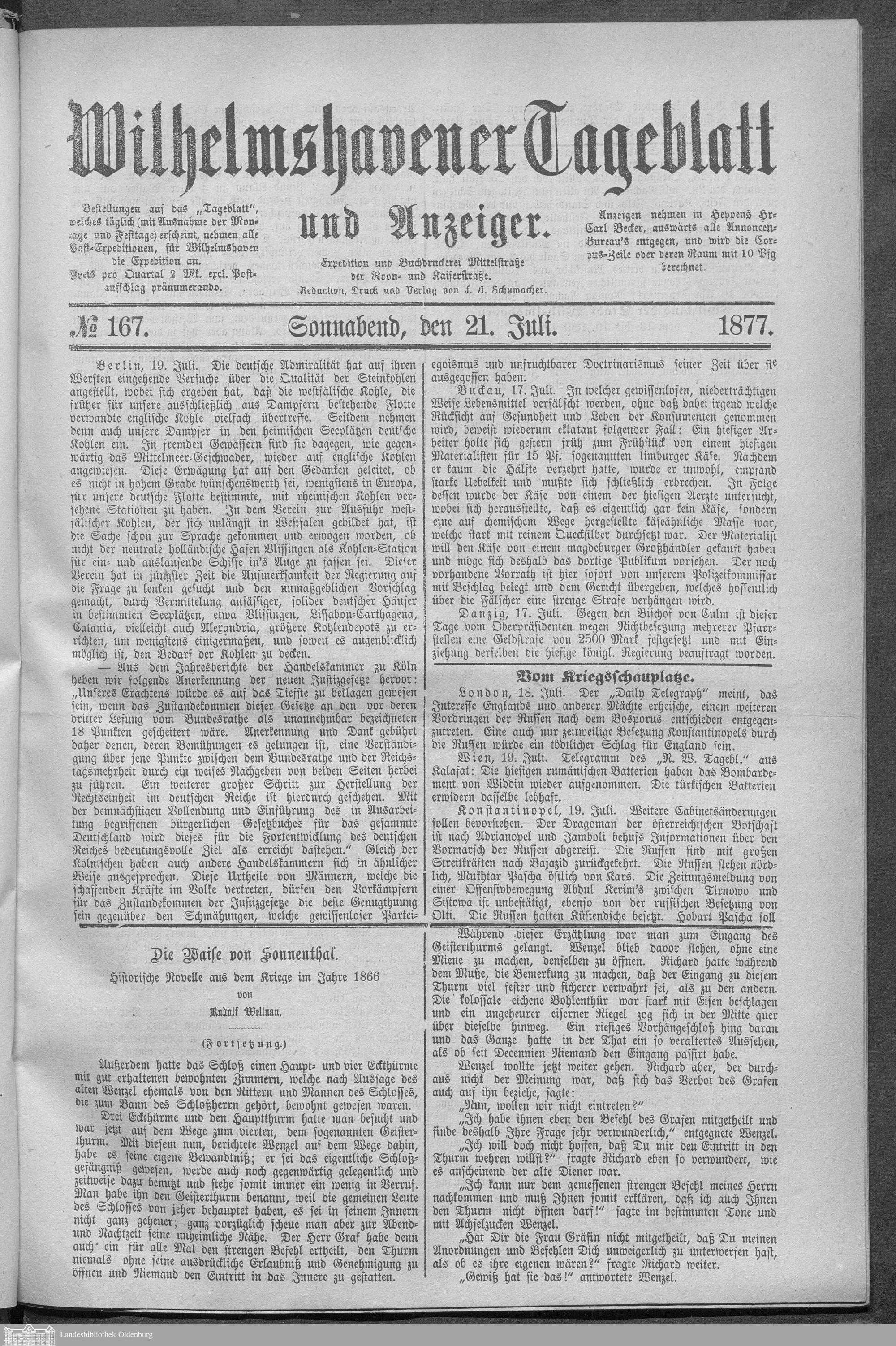 Wilhelmshavener Tageblatt und Anzeiger. 1876-1880
