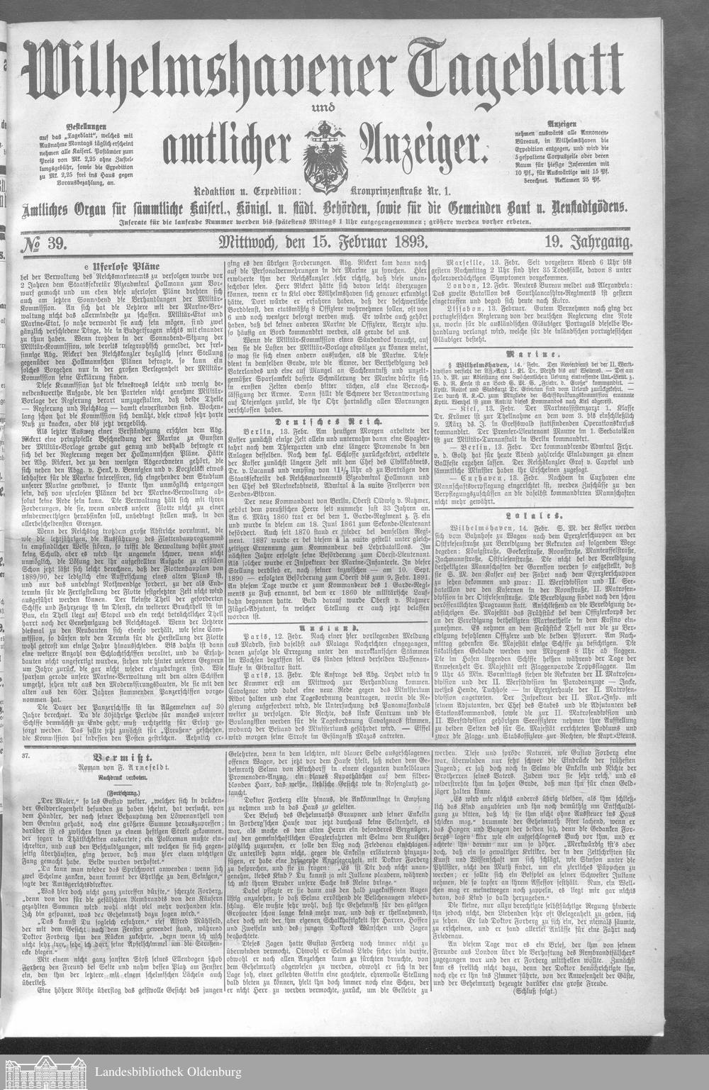 Wilhelmshavener Tageblatt und amtlicher Anzeiger....