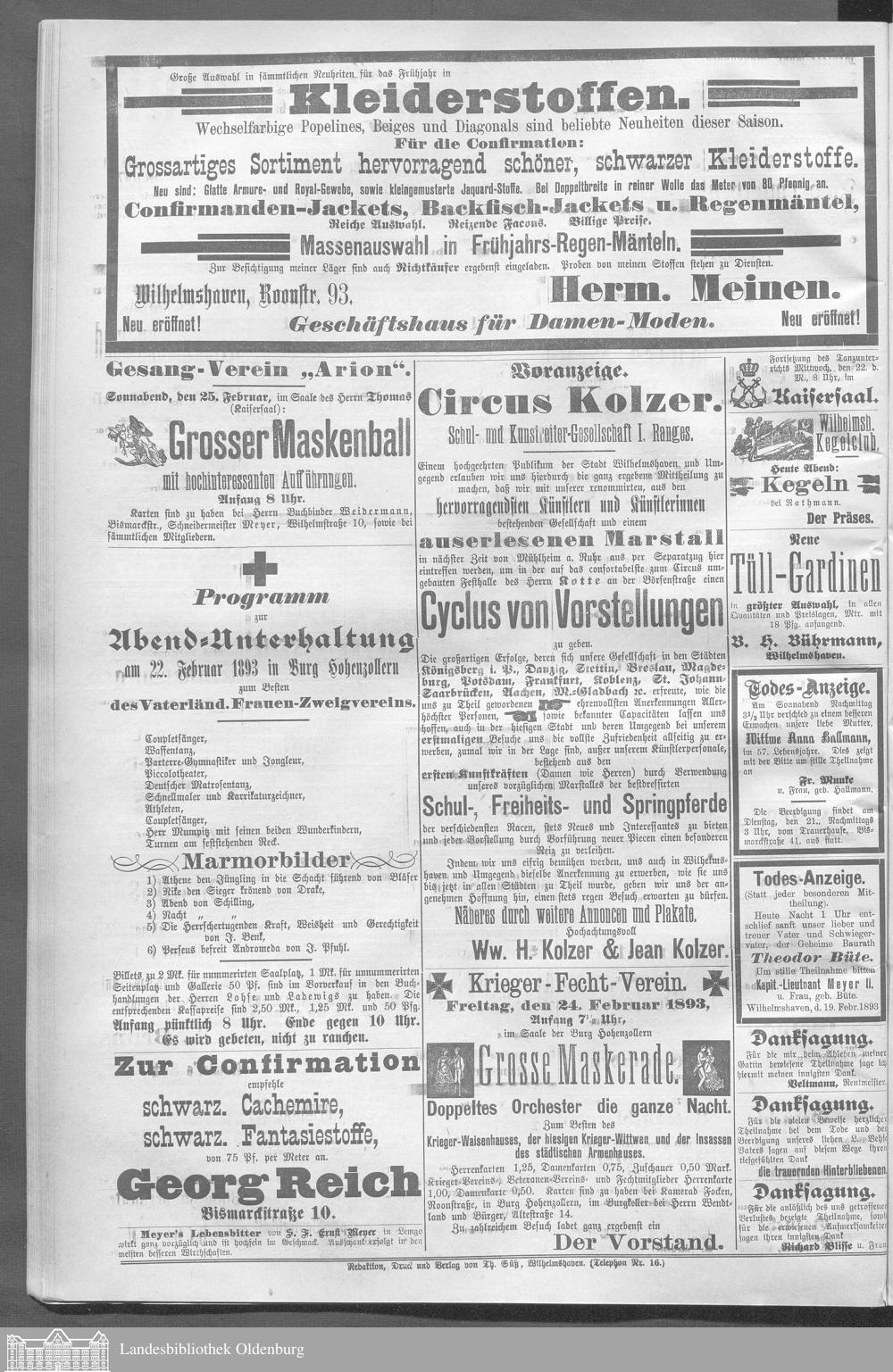 Wilhelmshavener Tageblatt und amtlicher Anzeiger....