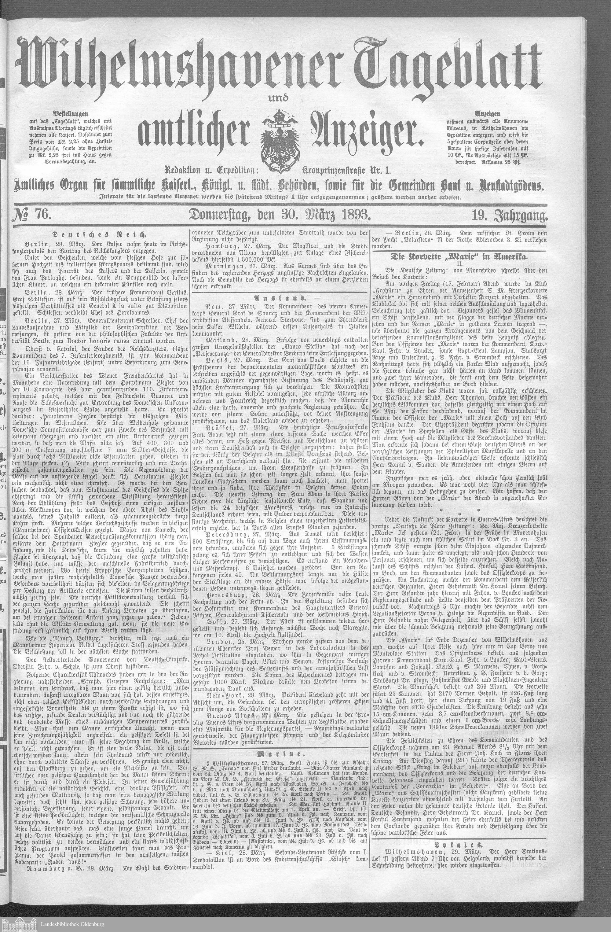 Wilhelmshavener Tageblatt und amtlicher Anzeiger....