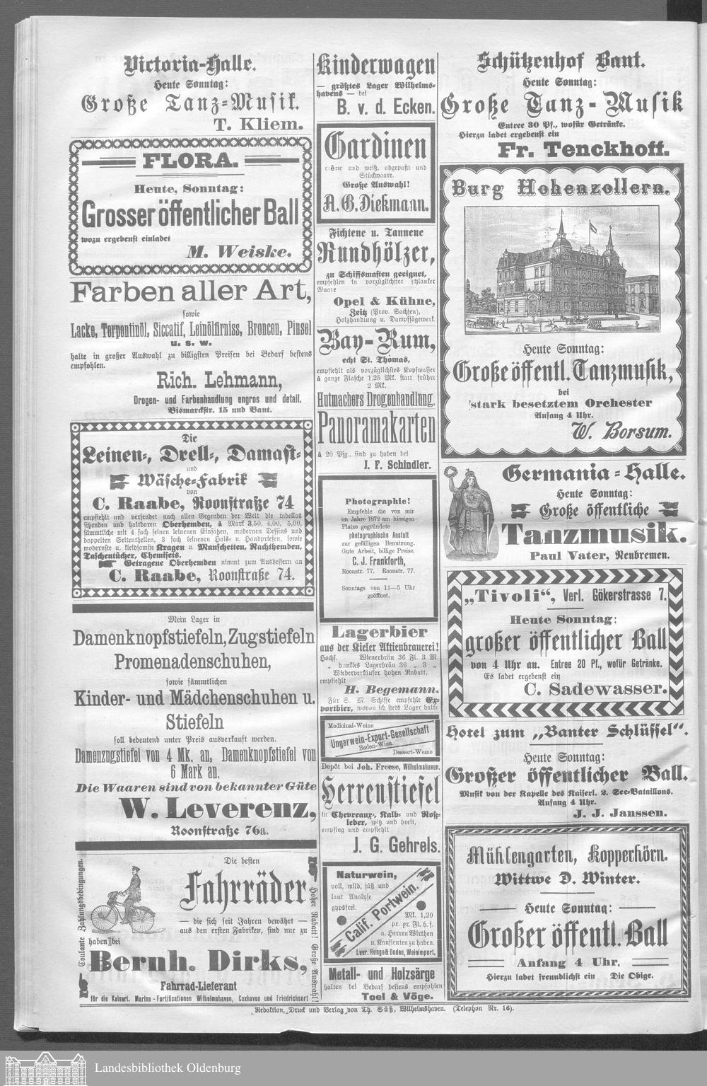 Wilhelmshavener Tageblatt und amtlicher Anzeiger. 1881-1909