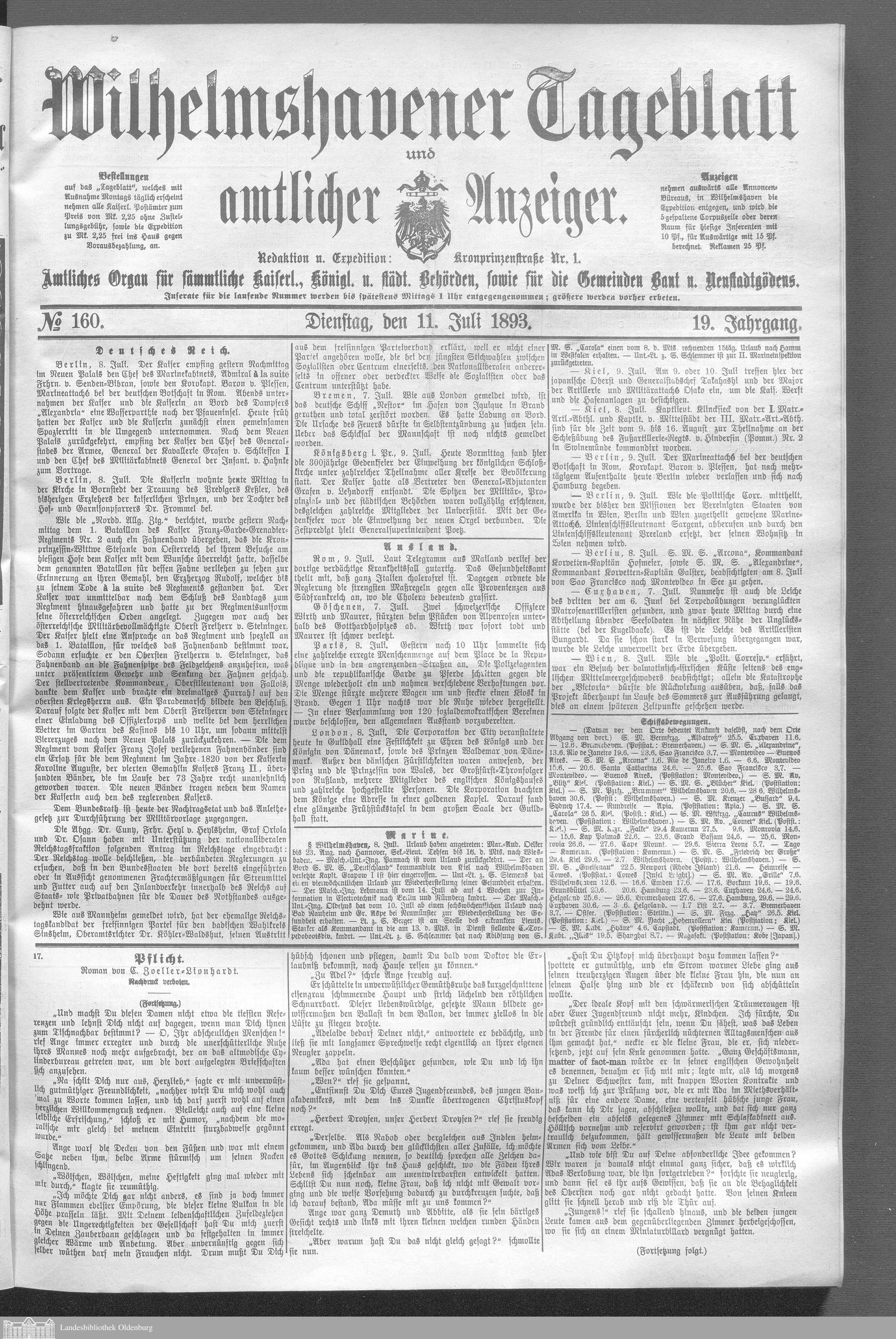 Wilhelmshavener Tageblatt und amtlicher Anzeiger....