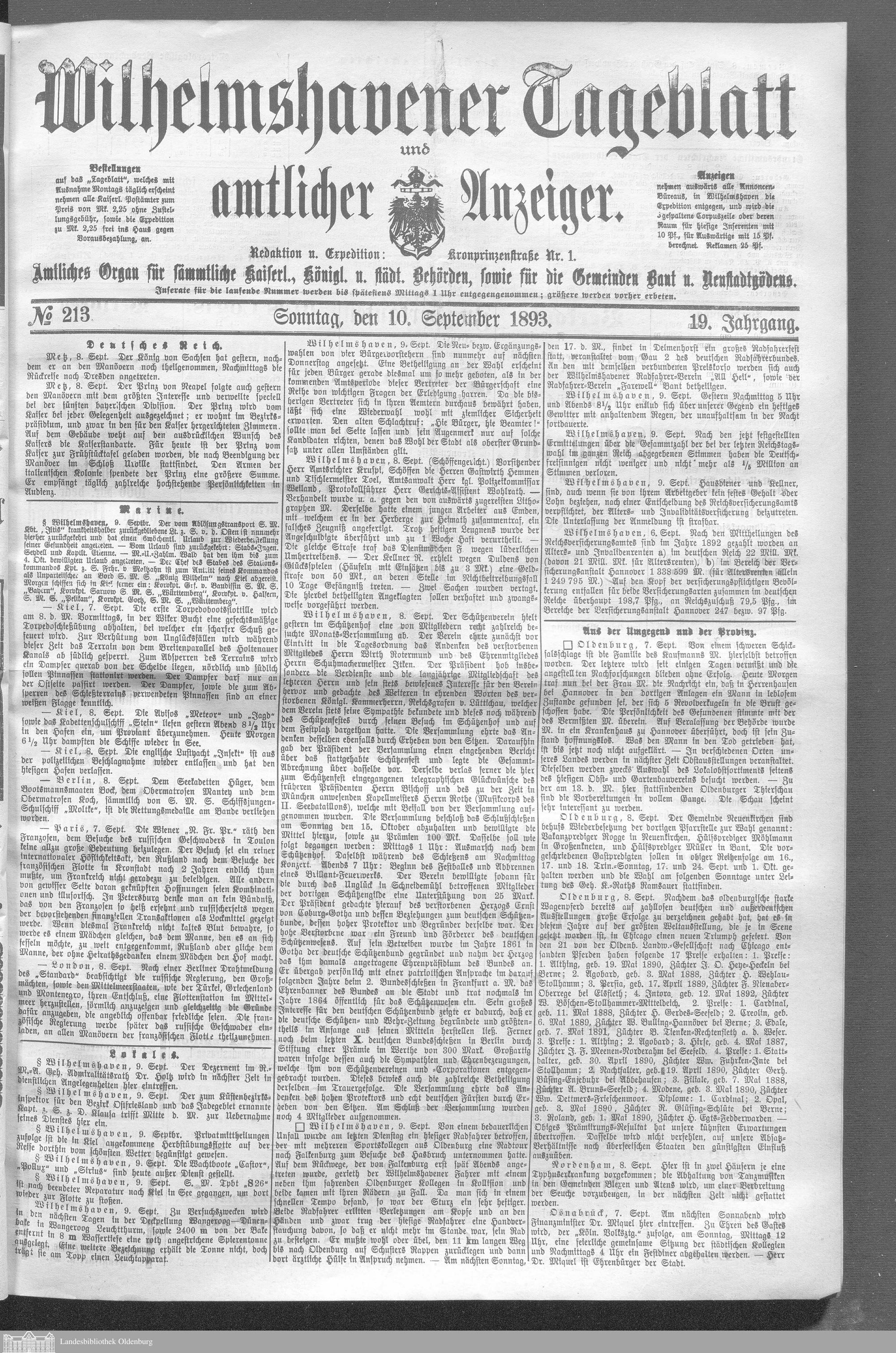 Wilhelmshavener Tageblatt und amtlicher Anzeiger....