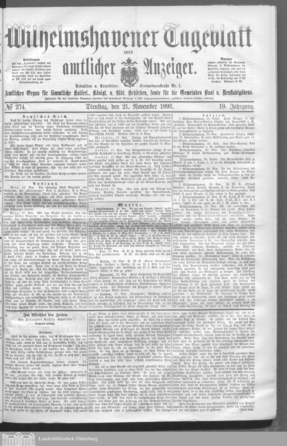 Wilhelmshavener Tageblatt und amtlicher Anzeiger....
