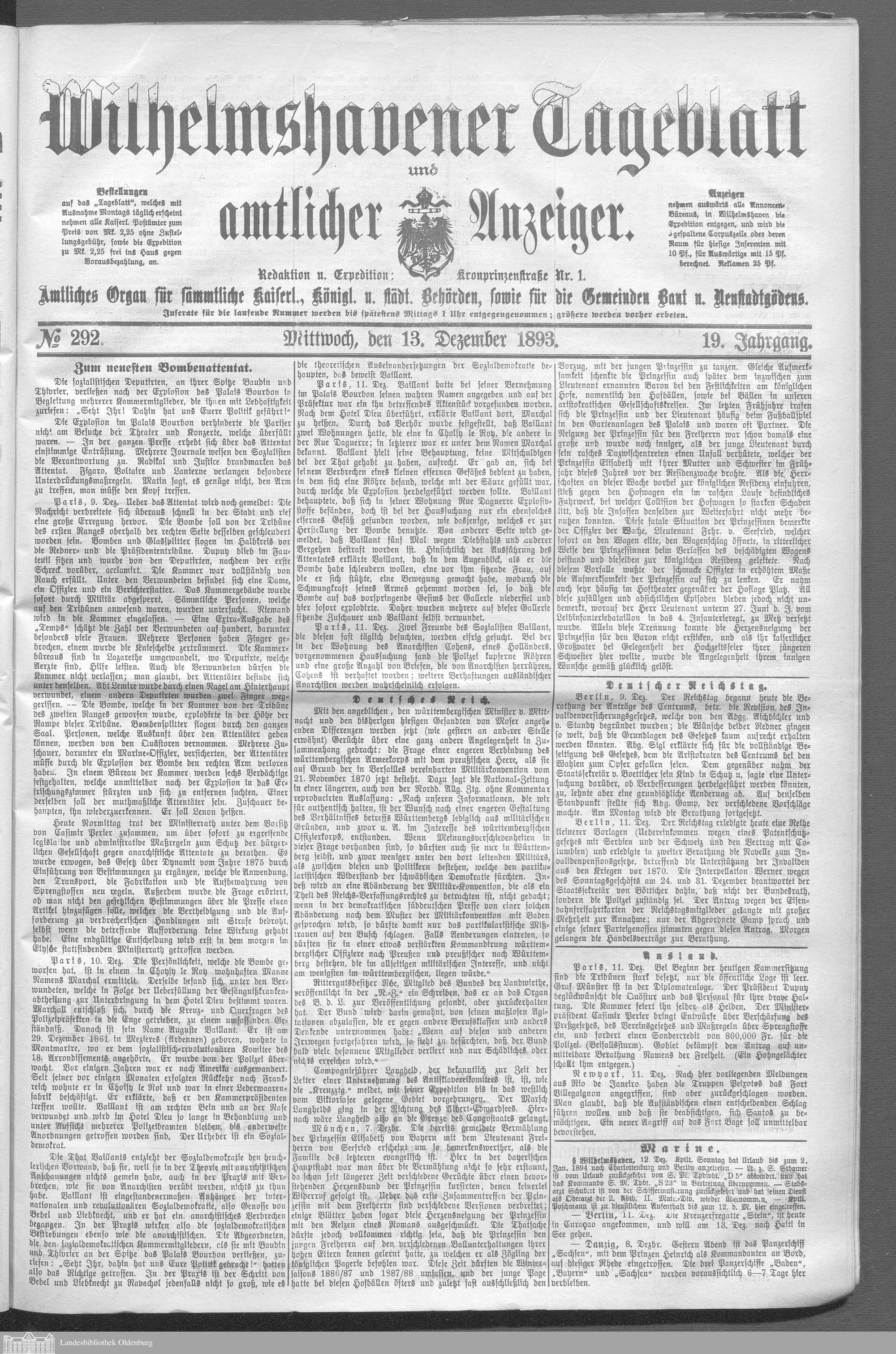 Wilhelmshavener Tageblatt und amtlicher Anzeiger....