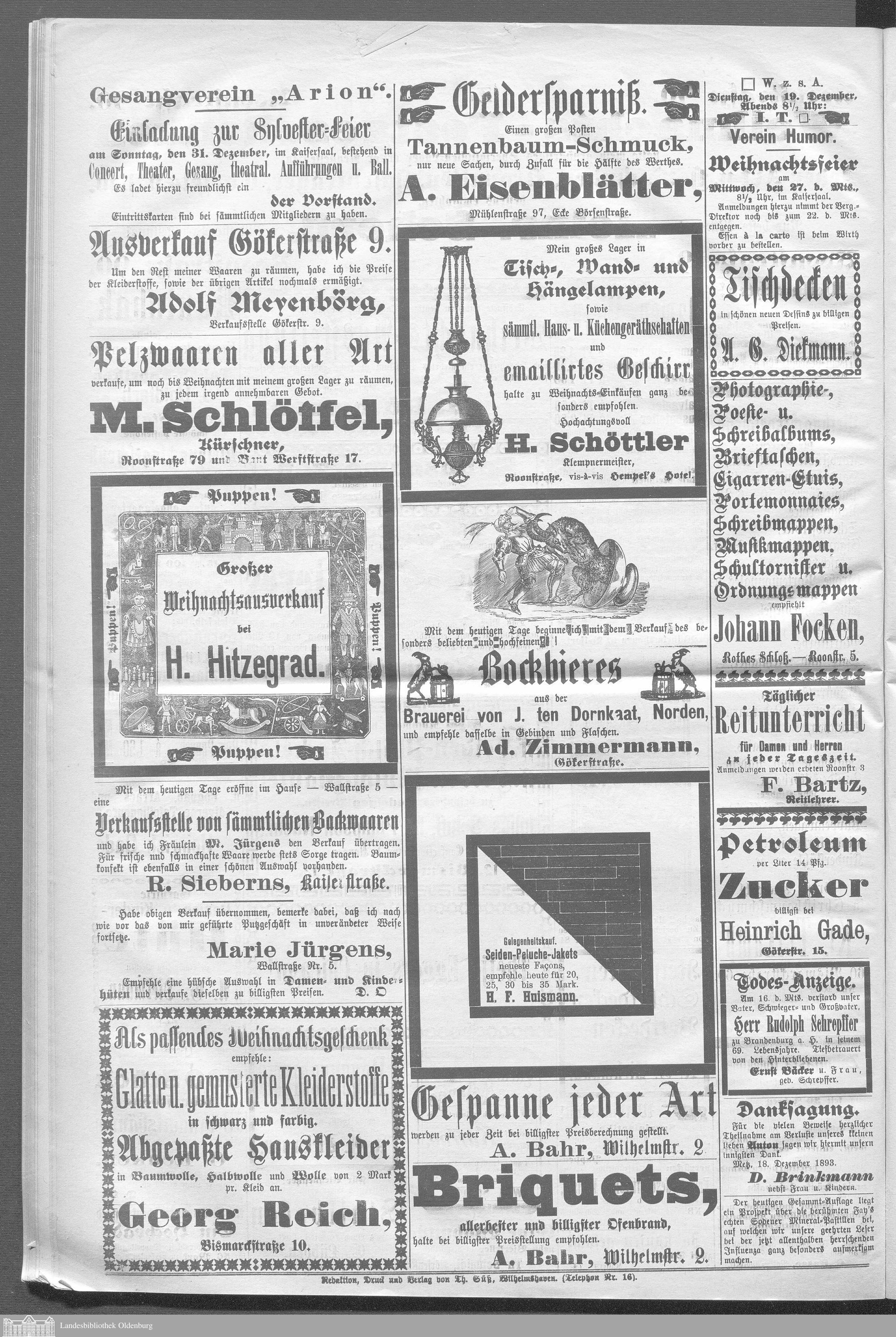 Wilhelmshavener Tageblatt und amtlicher Anzeiger....