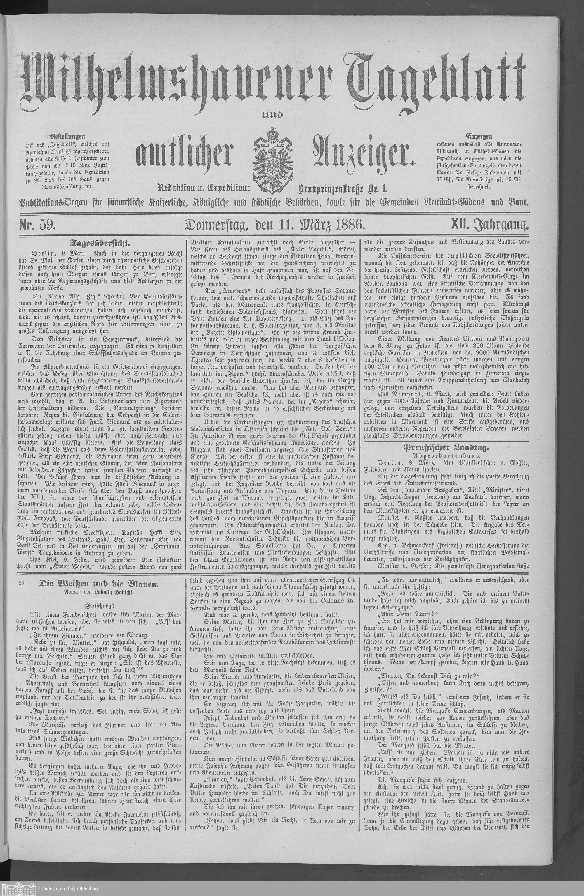 Wilhelmshavener Tageblatt und amtlicher Anzeiger....