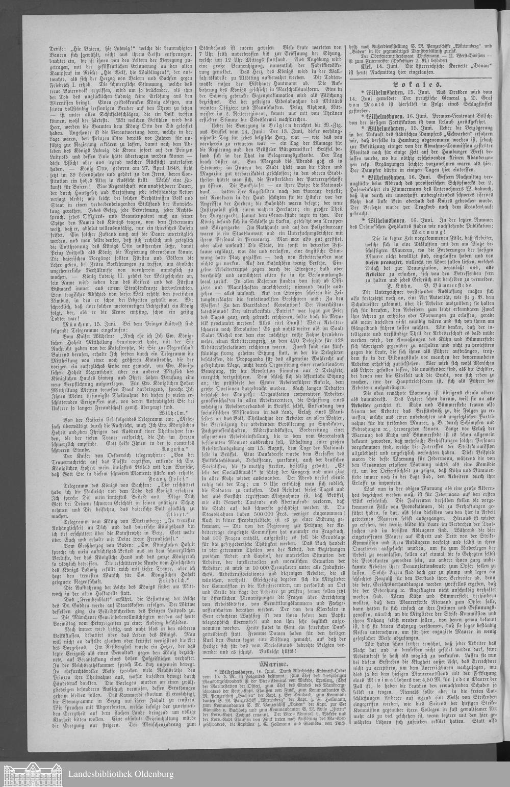 Wilhelmshavener Tageblatt und amtlicher Anzeiger. 1881-1909