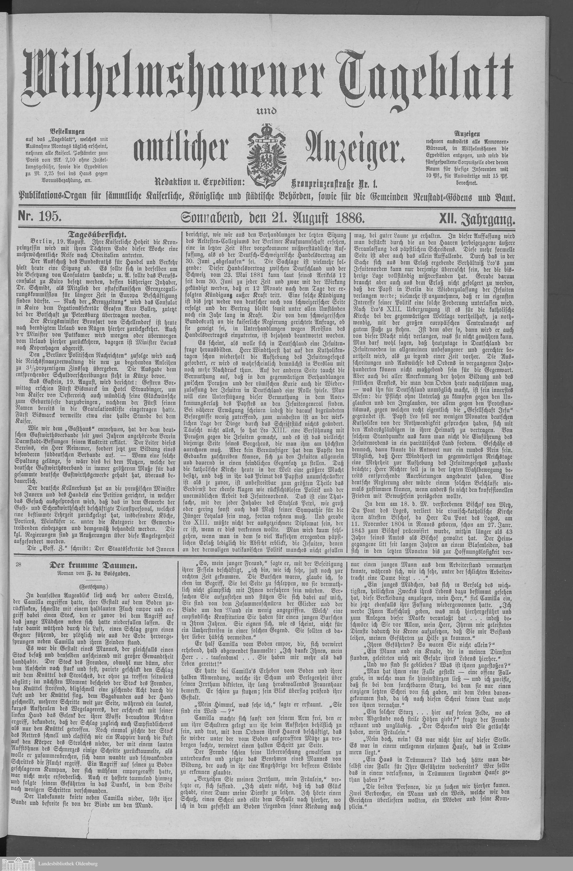 Wilhelmshavener Tageblatt und amtlicher Anzeiger....