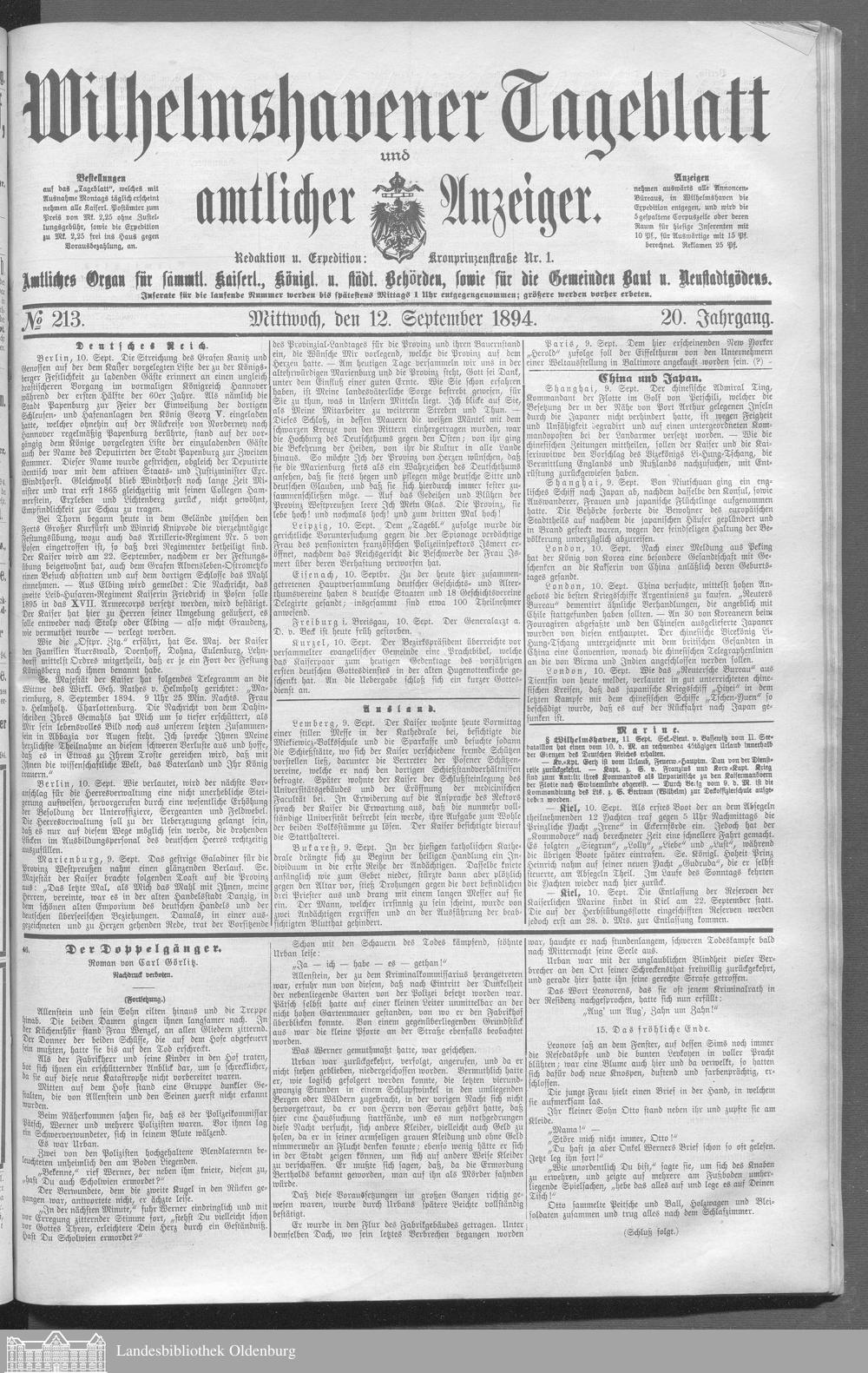 Wilhelmshavener Tageblatt und amtlicher Anzeiger....