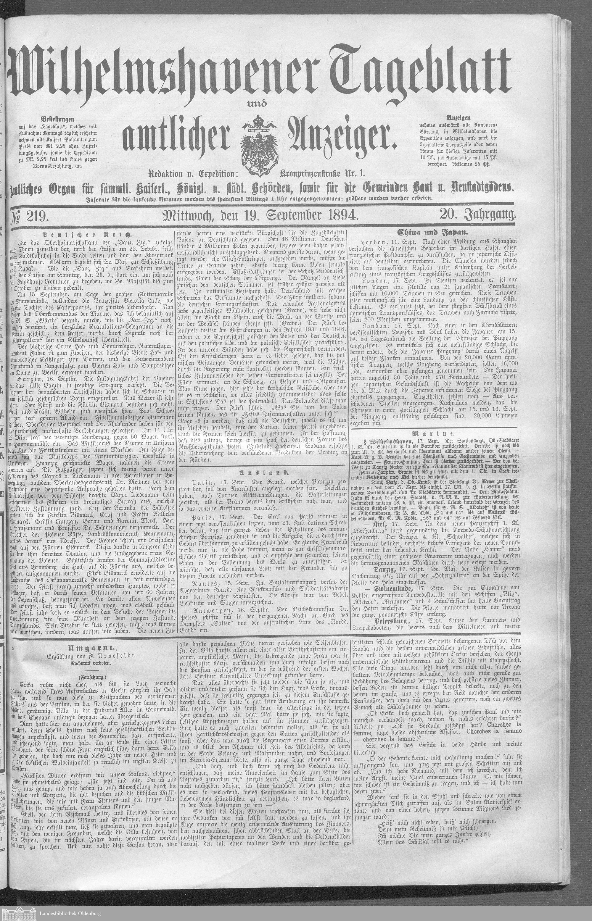 Wilhelmshavener Tageblatt und amtlicher Anzeiger....