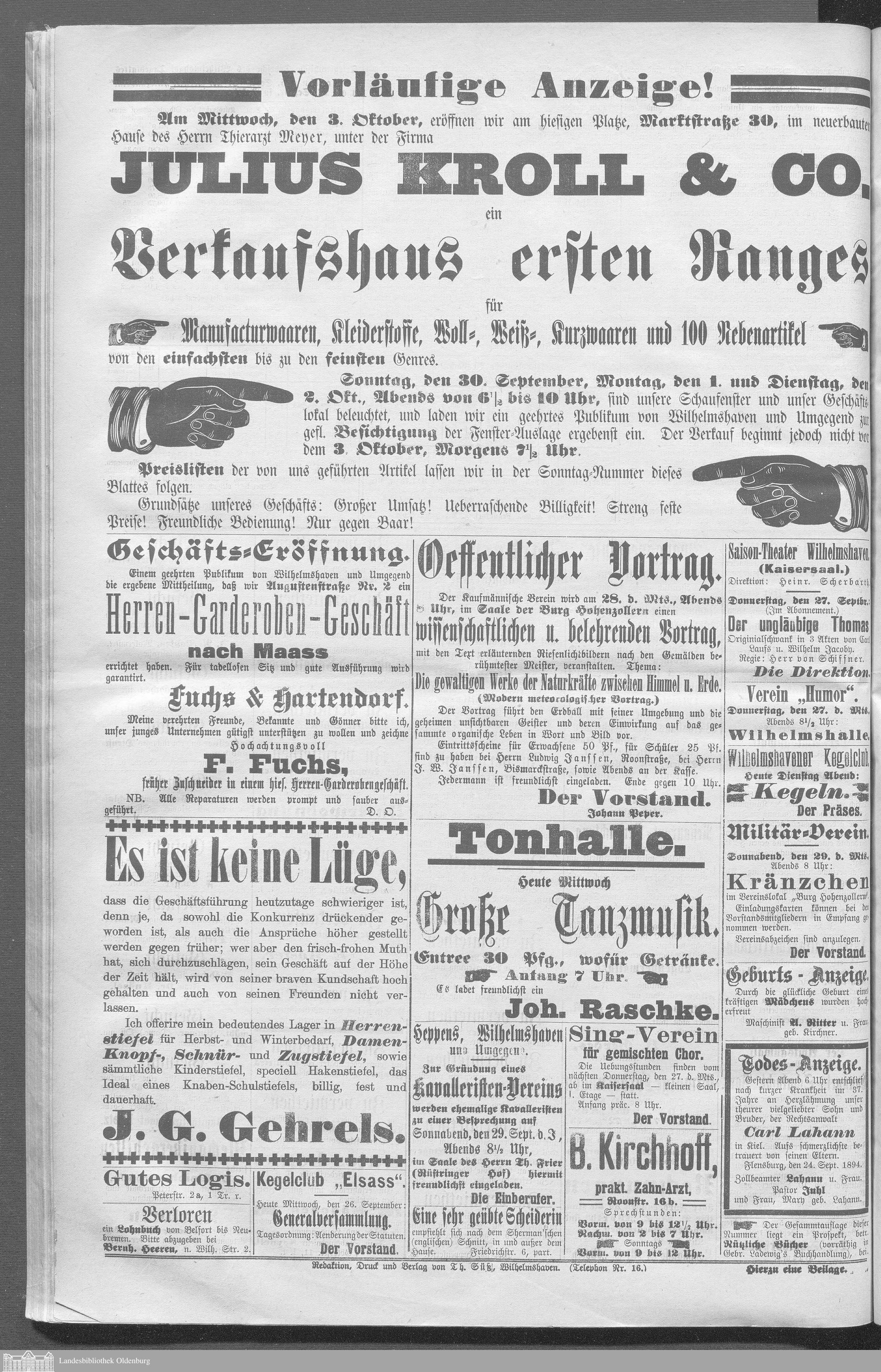 Wilhelmshavener Tageblatt und amtlicher Anzeiger....