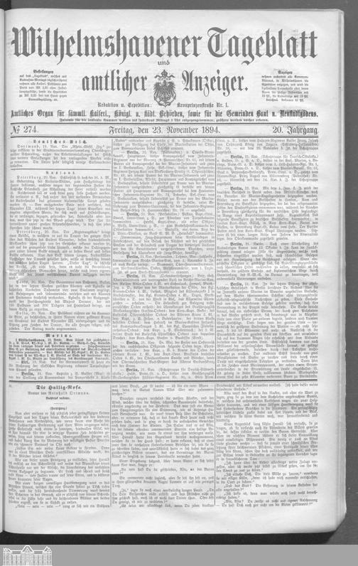 Wilhelmshavener Tageblatt und amtlicher Anzeiger....