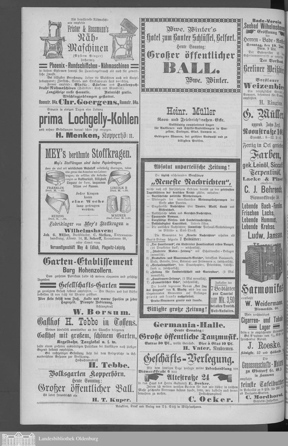 Wilhelmshavener Tageblatt und amtlicher Anzeiger. 1881-1909