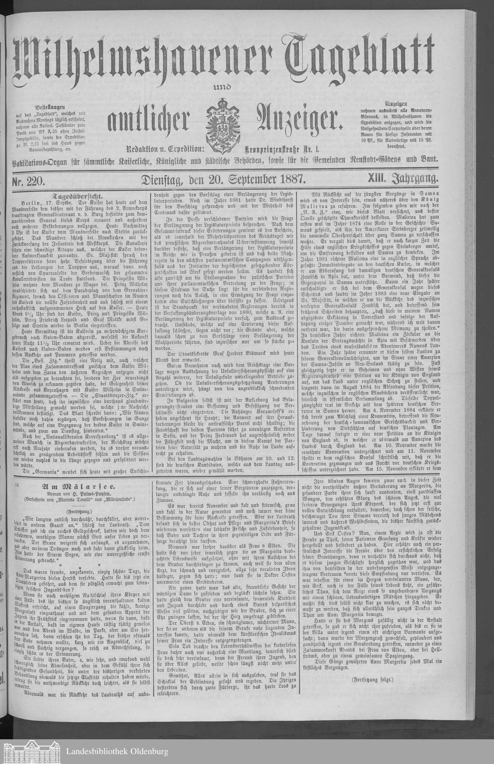 Wilhelmshavener Tageblatt und amtlicher Anzeiger. 1881-1909