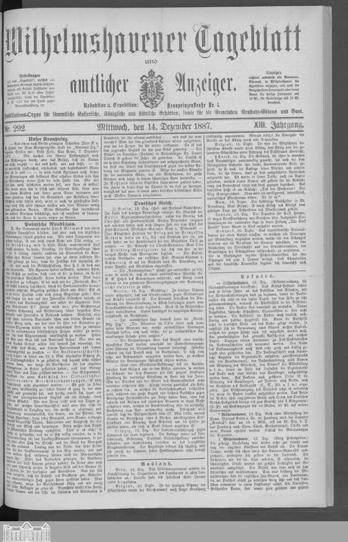 Wilhelmshavener Tageblatt und amtlicher Anzeiger. 1881-1909