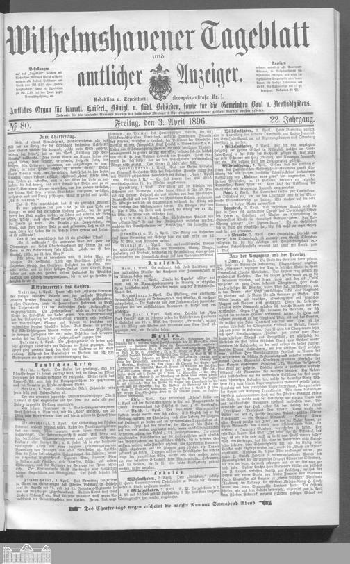 Wilhelmshavener Tageblatt und amtlicher Anzeiger. 1881-1909