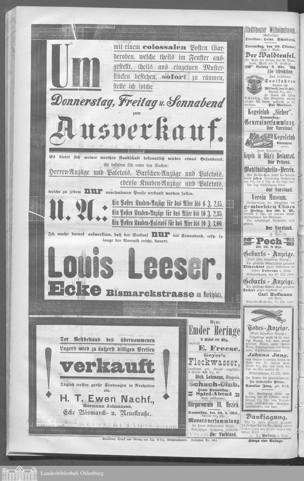 Wilhelmshavener Tageblatt und amtlicher Anzeiger....