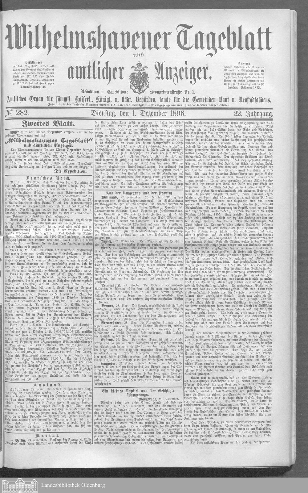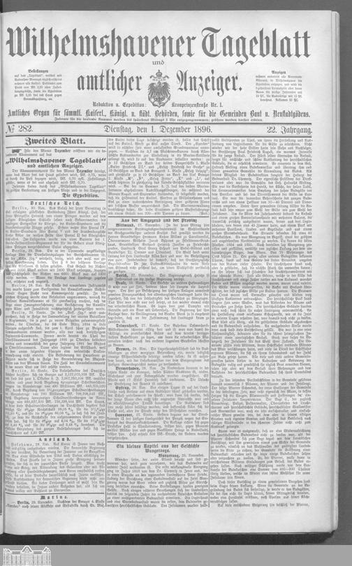 Wilhelmshavener Tageblatt und amtlicher Anzeiger. 1881-1909
