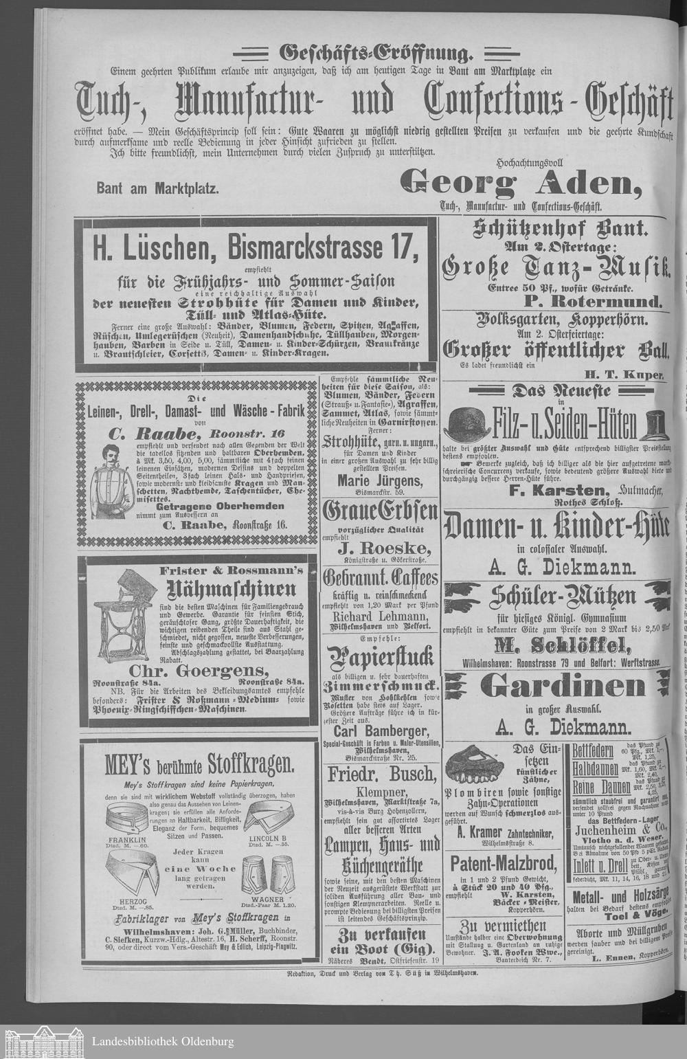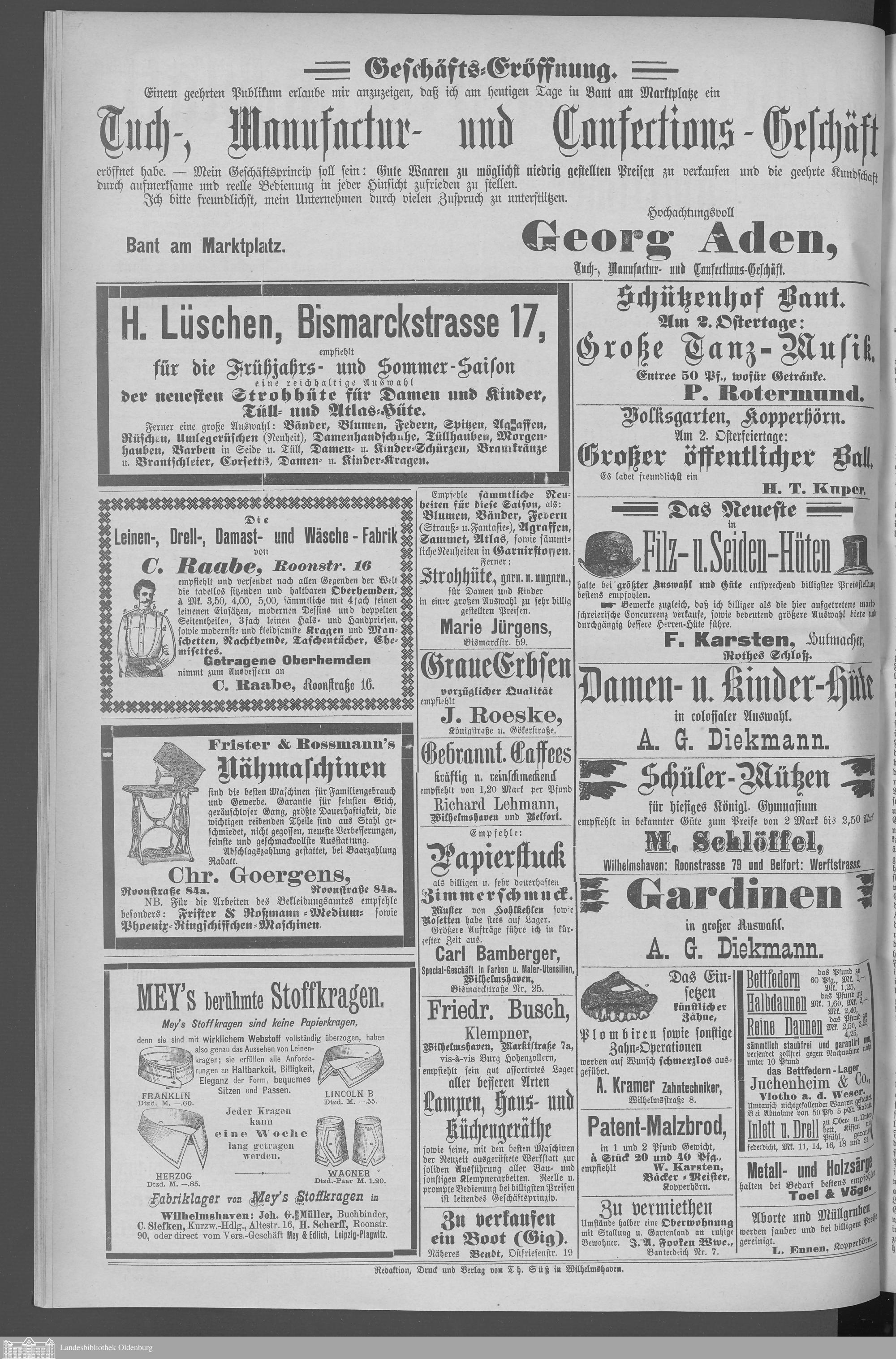Wilhelmshavener Tageblatt und amtlicher Anzeiger. 1881-1909