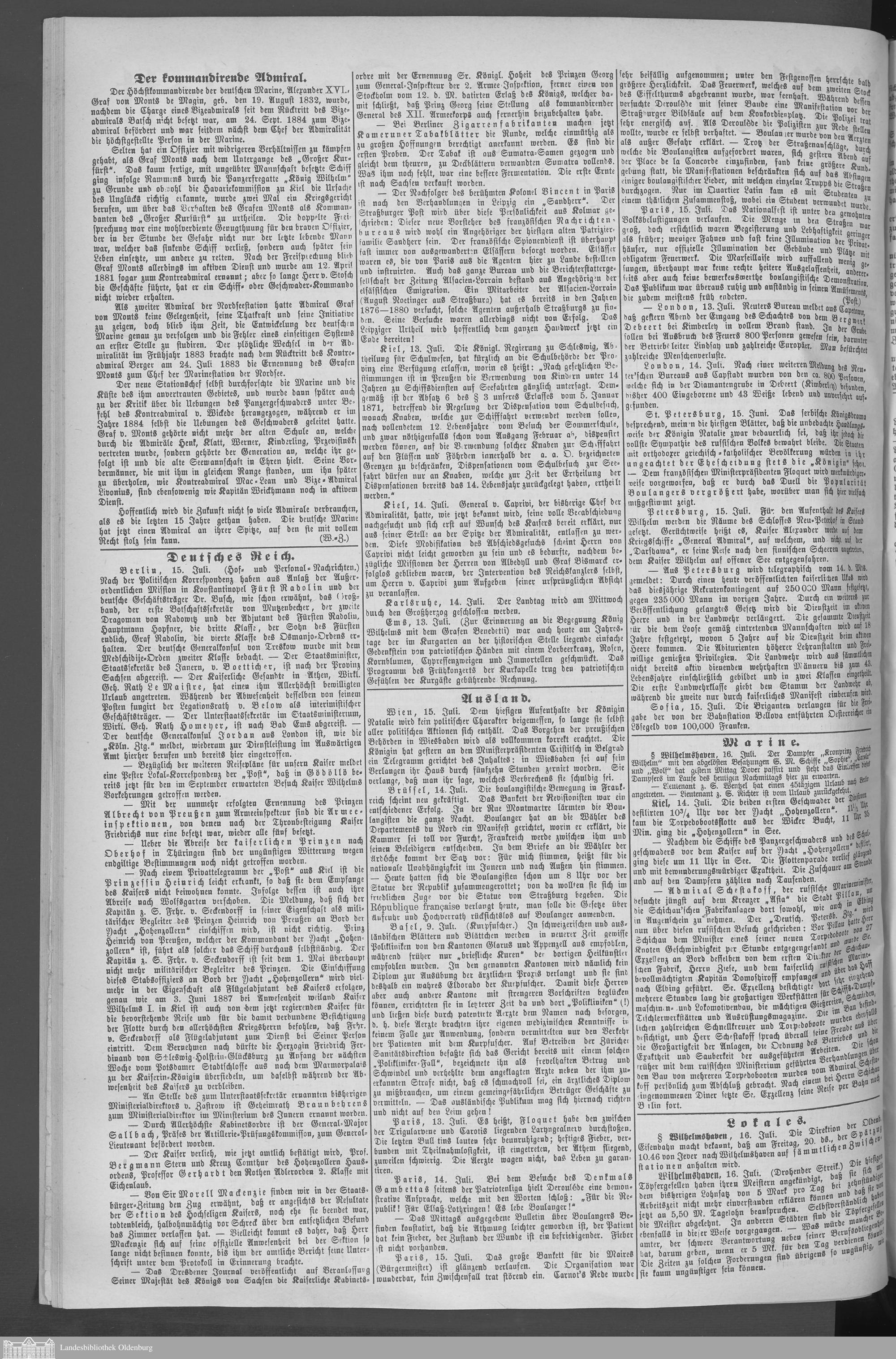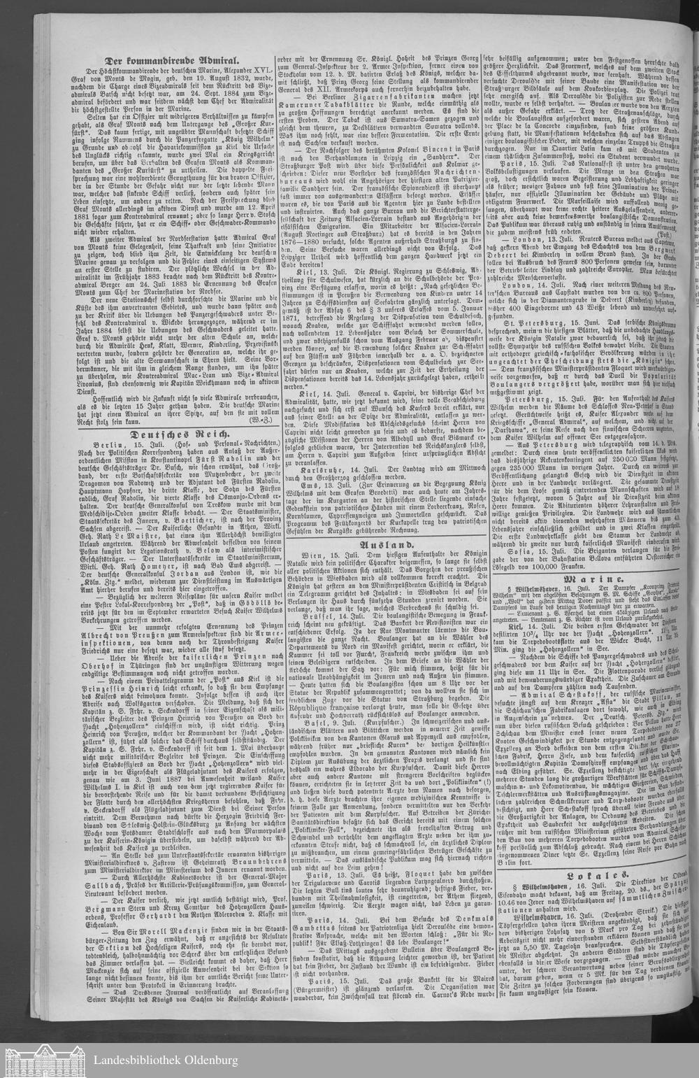 Wilhelmshavener Tageblatt und amtlicher Anzeiger. 1881-1909