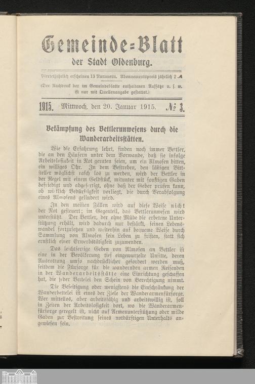Gemeindeblatt der Stadt Oldenburg. 1904-1920