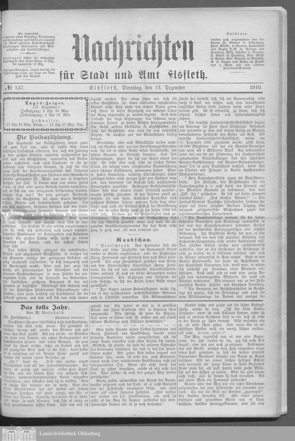 Nachrichten für Stadt und Amt Elsfleth. 1871-1933