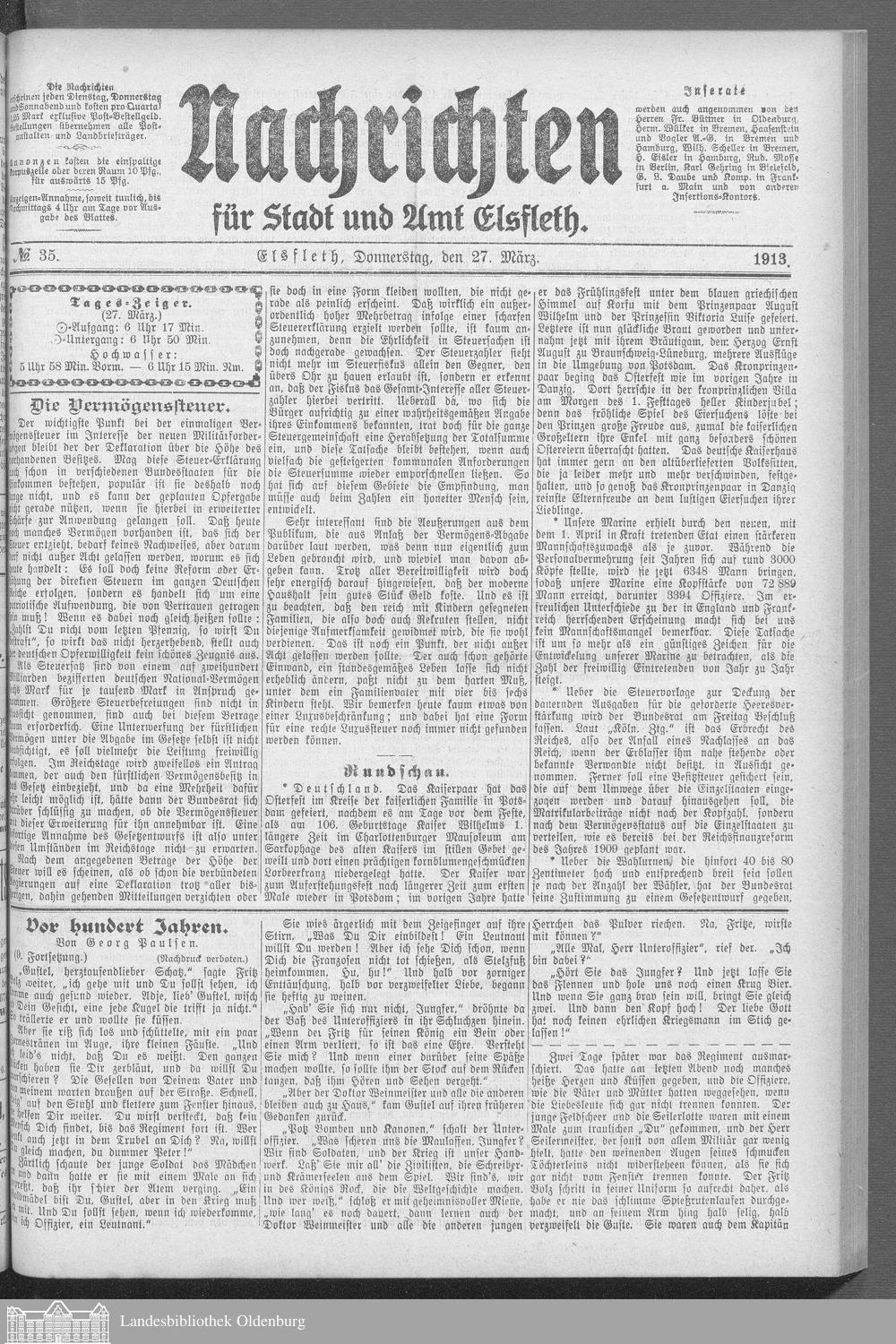 Nachrichten für Stadt und Amt Elsfleth. 1871-1933
