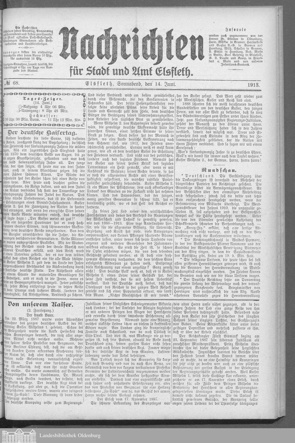Nachrichten für Stadt und Amt Elsfleth. 1871-1933