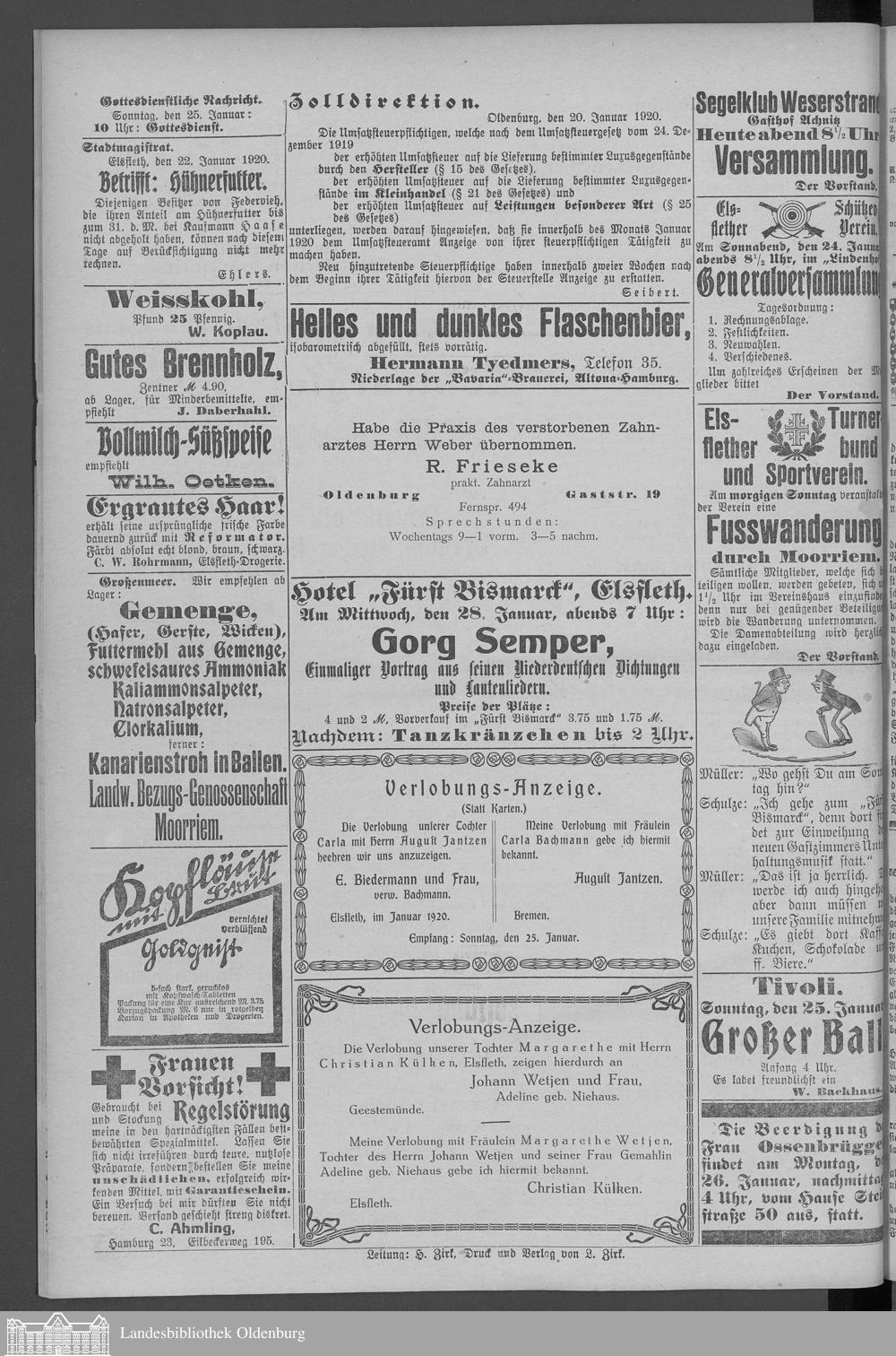 Nachrichten für Stadt und Amt Elsfleth. 1871-1933