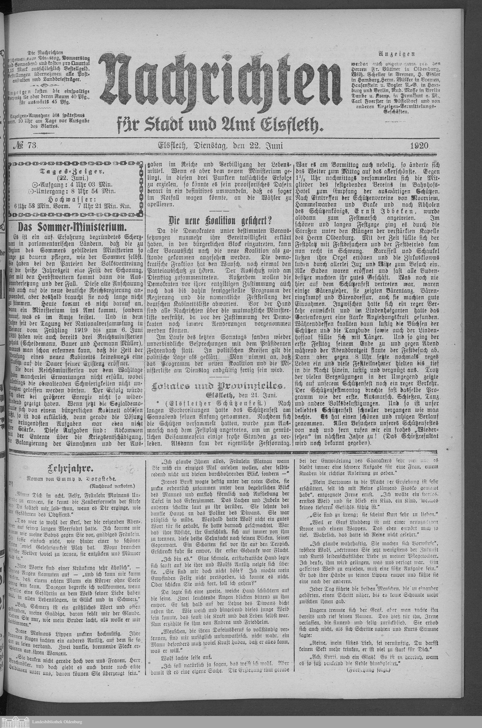 Nachrichten für Stadt und Amt Elsfleth. ...