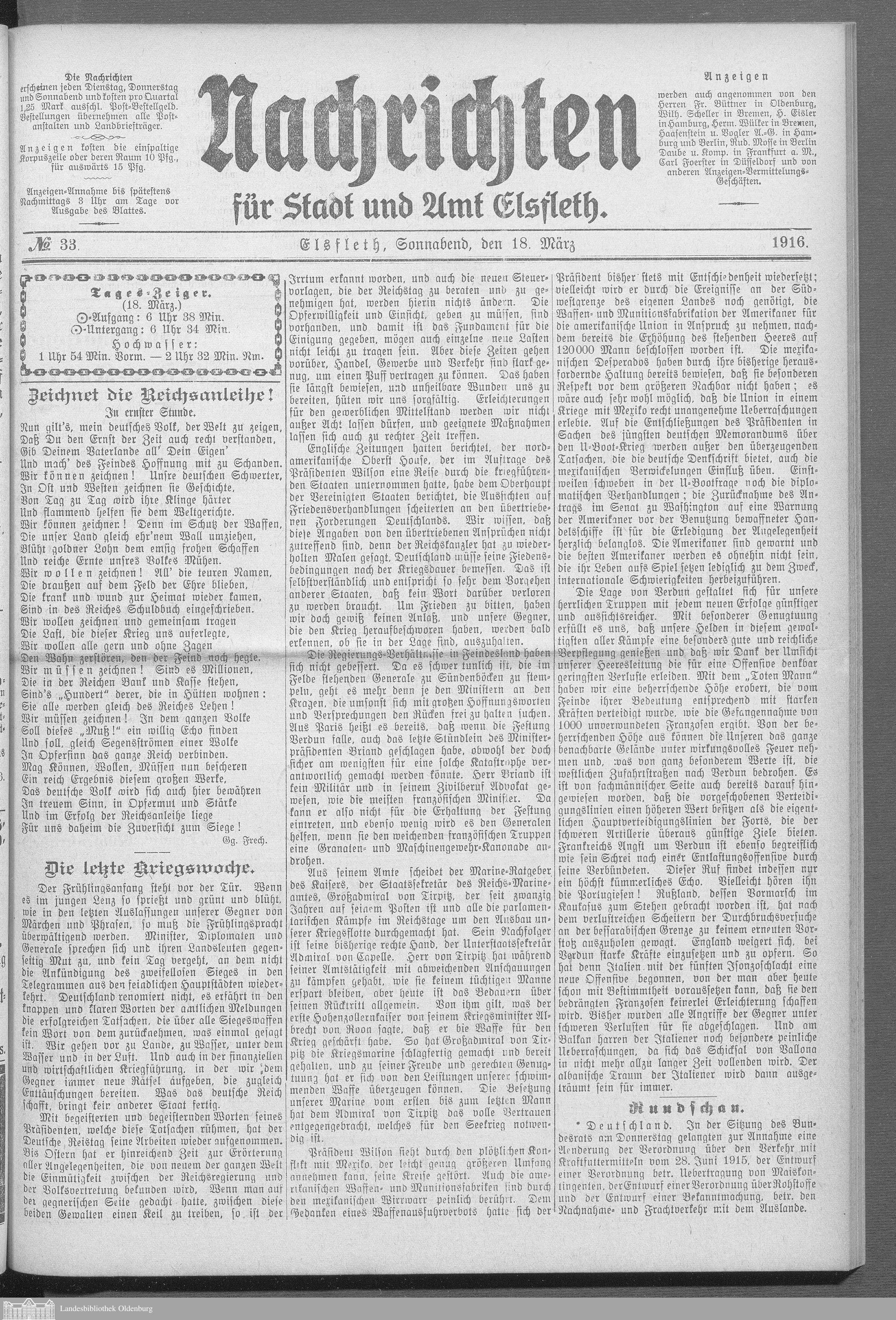 Nachrichten für Stadt und Amt Elsfleth. 1871-1933