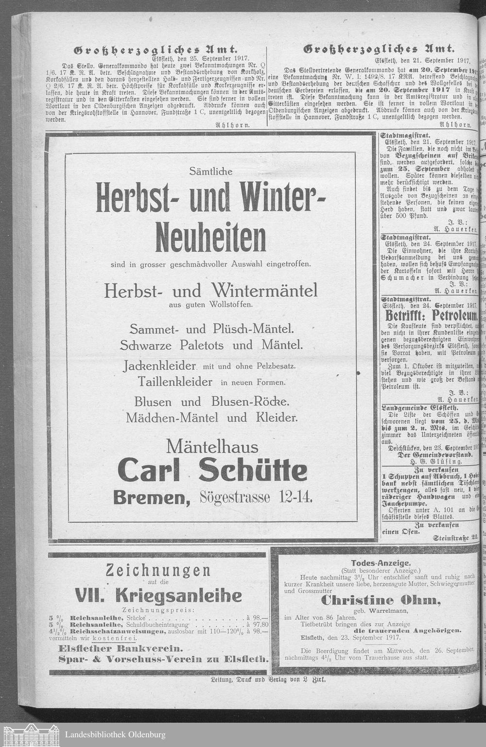 Nachrichten für Stadt und Amt Elsfleth. ...
