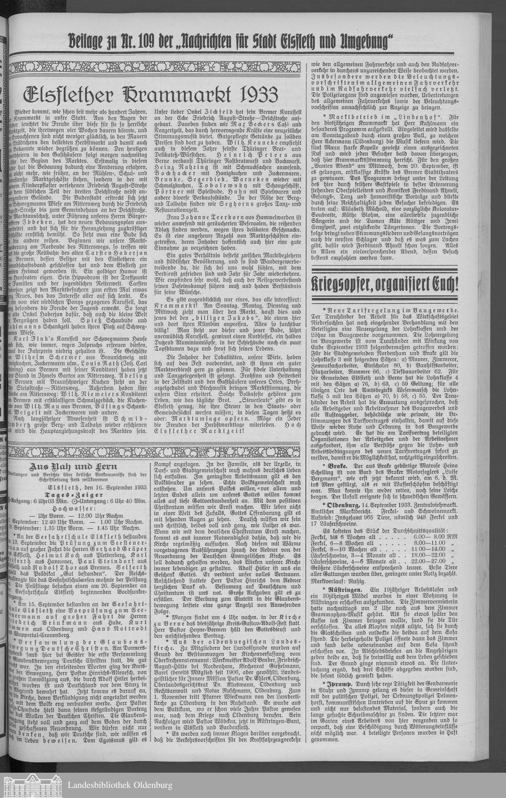 Nachrichten für Stadt Elsfleth und Umgebung. 1933-1940