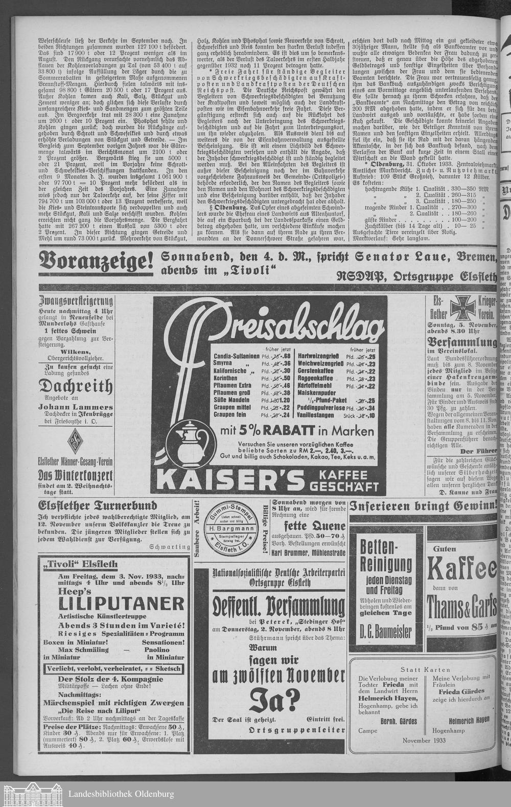 Nachrichten für Stadt Elsfleth und Umgebung. 1933-1940