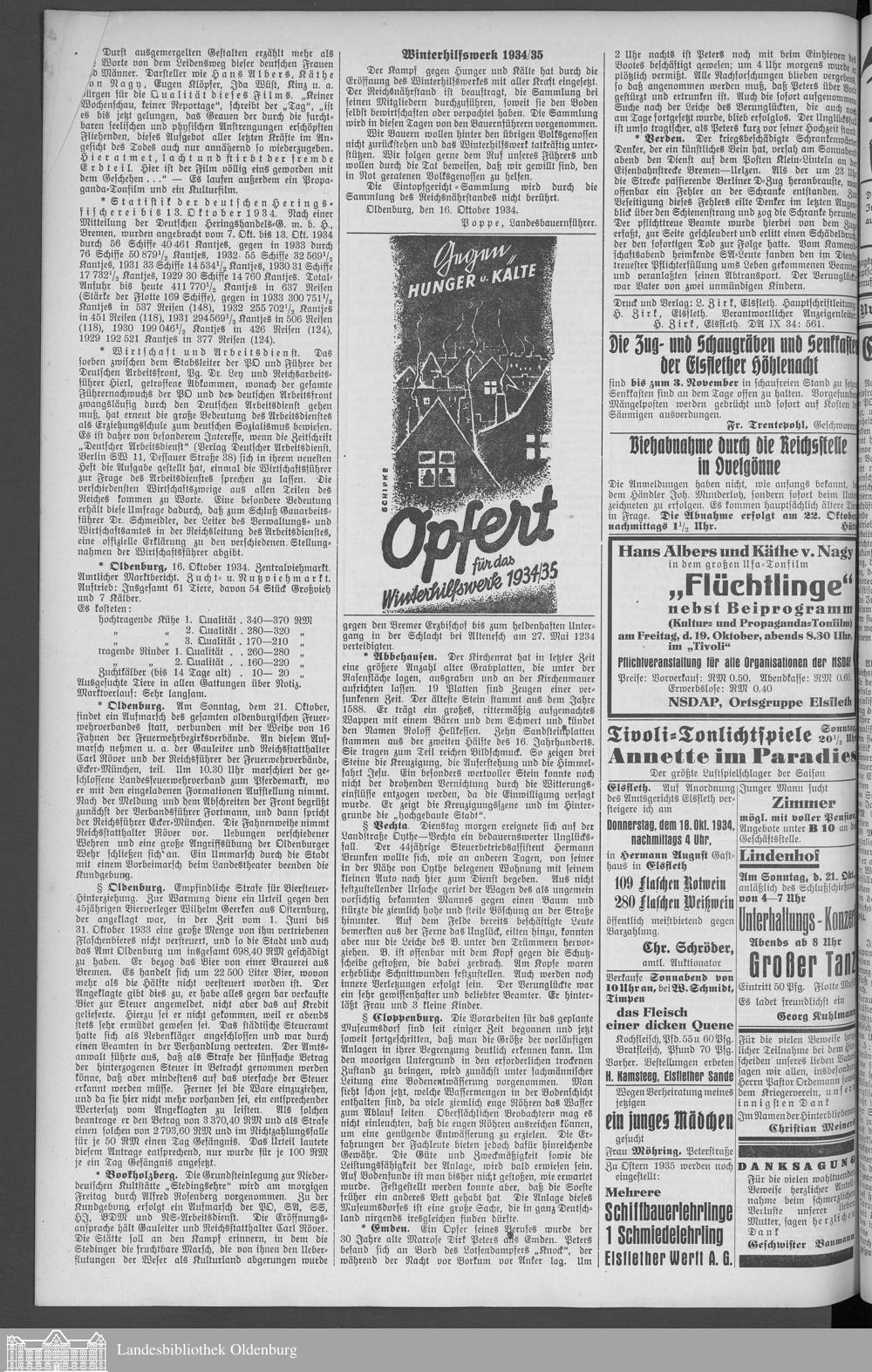 Nachrichten für Stadt Elsfleth und Umgebung. 1933-1940