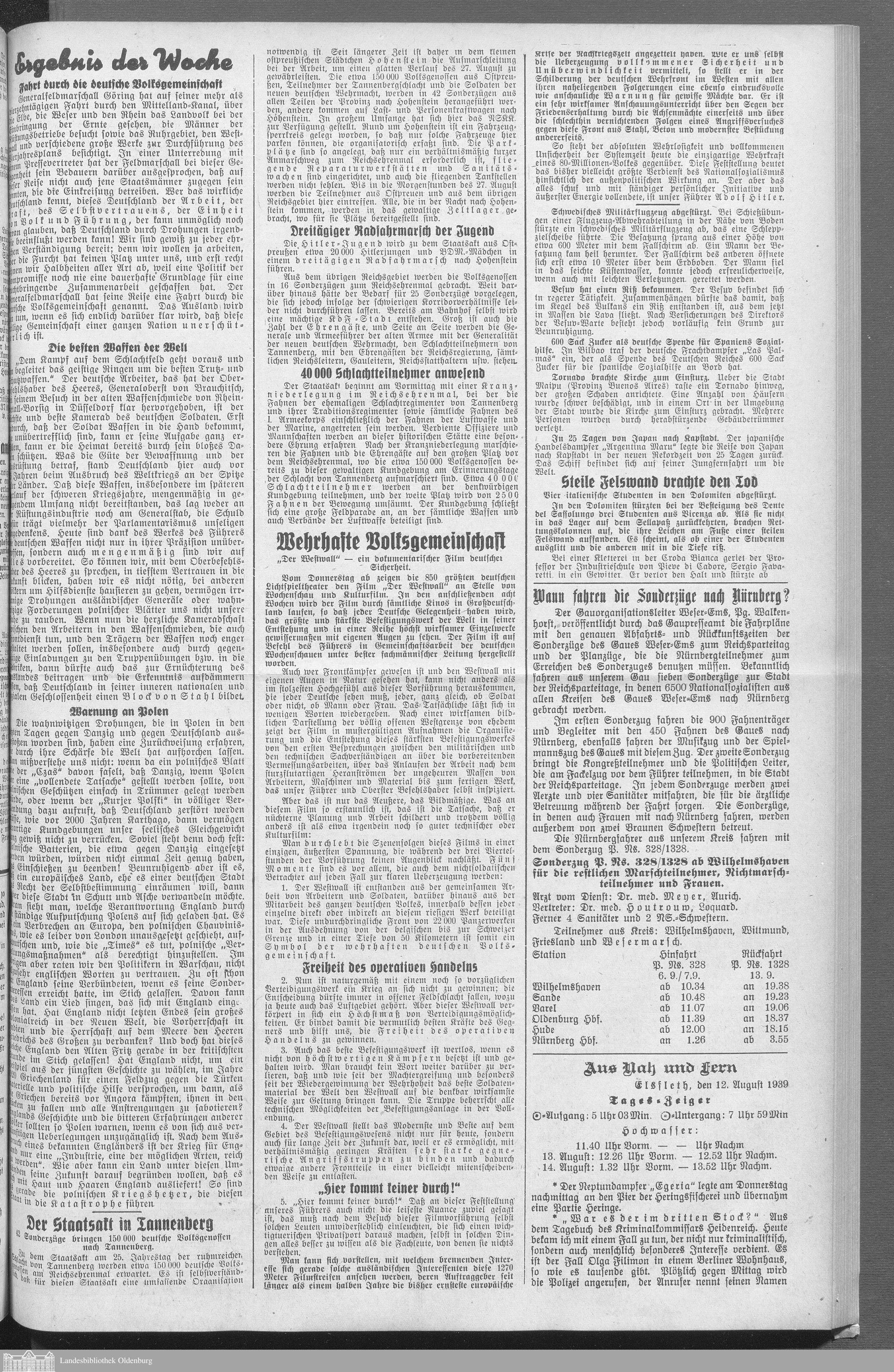 Nachrichten für Stadt Elsfleth und Umgebung. 1933-1940