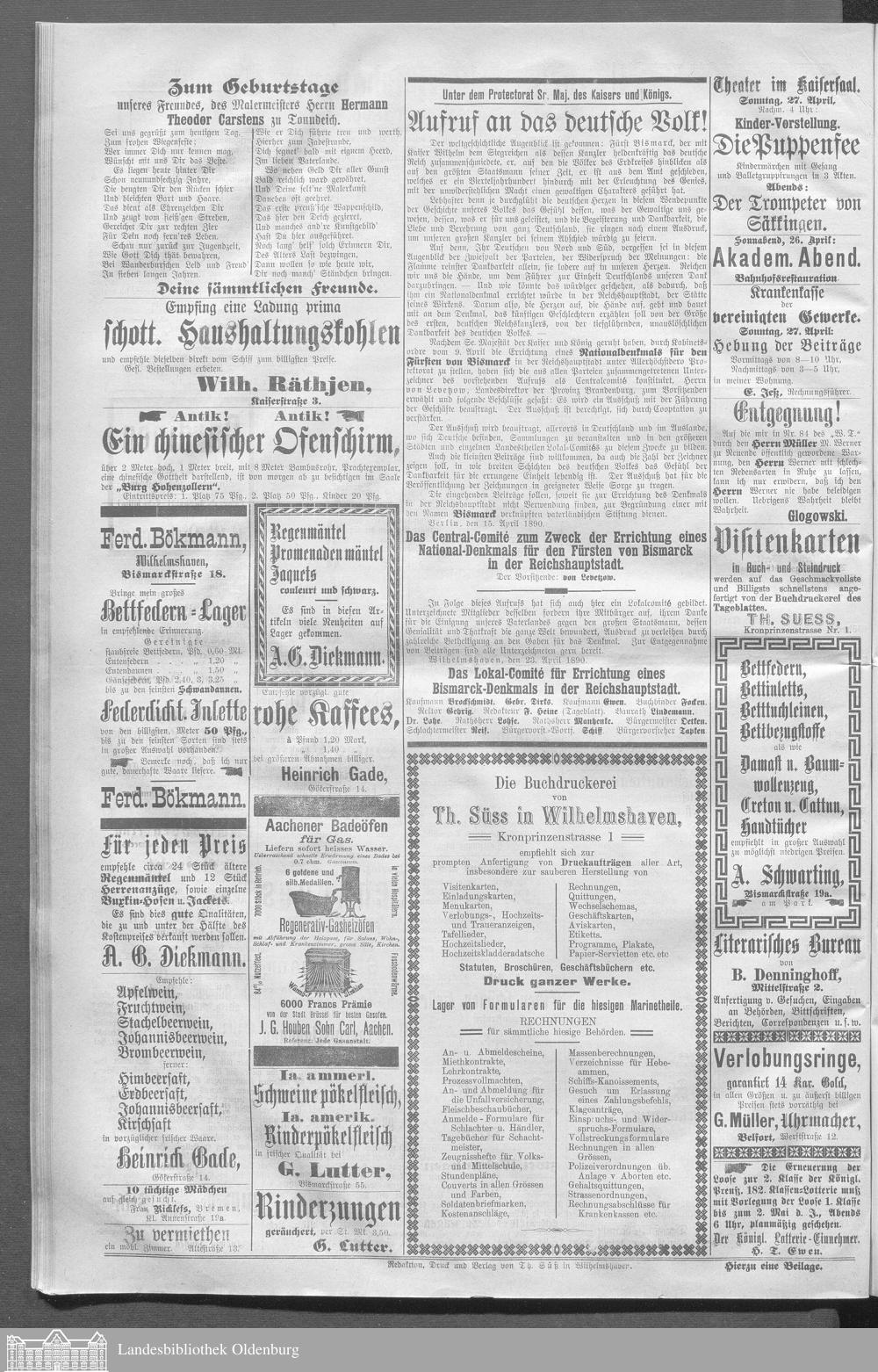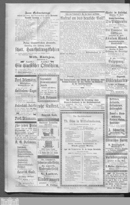 Wilhelmshavener Tageblatt und amtlicher Anzeiger. 1881-1909