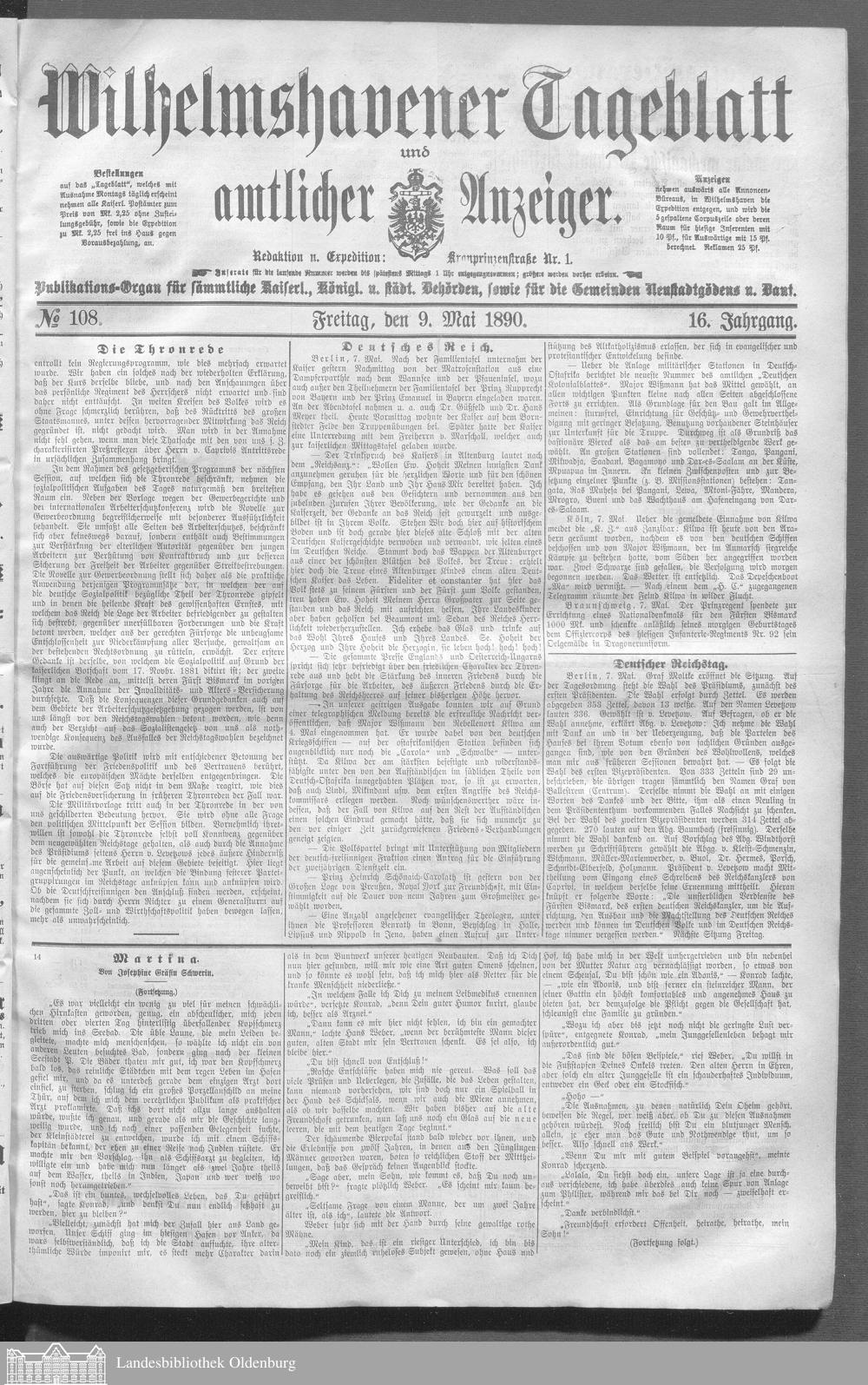 Wilhelmshavener Tageblatt und amtlicher Anzeiger. 1881-1909