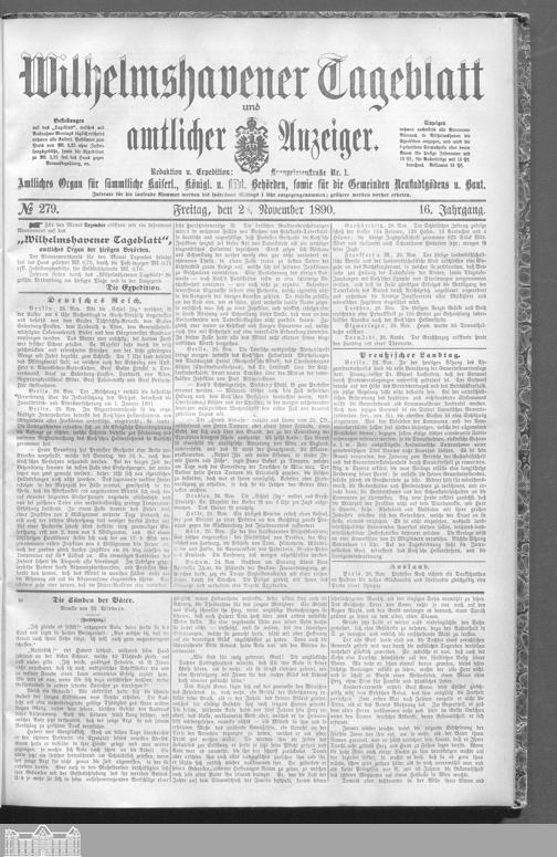 Wilhelmshavener Tageblatt und amtlicher Anzeiger. 1881-1909