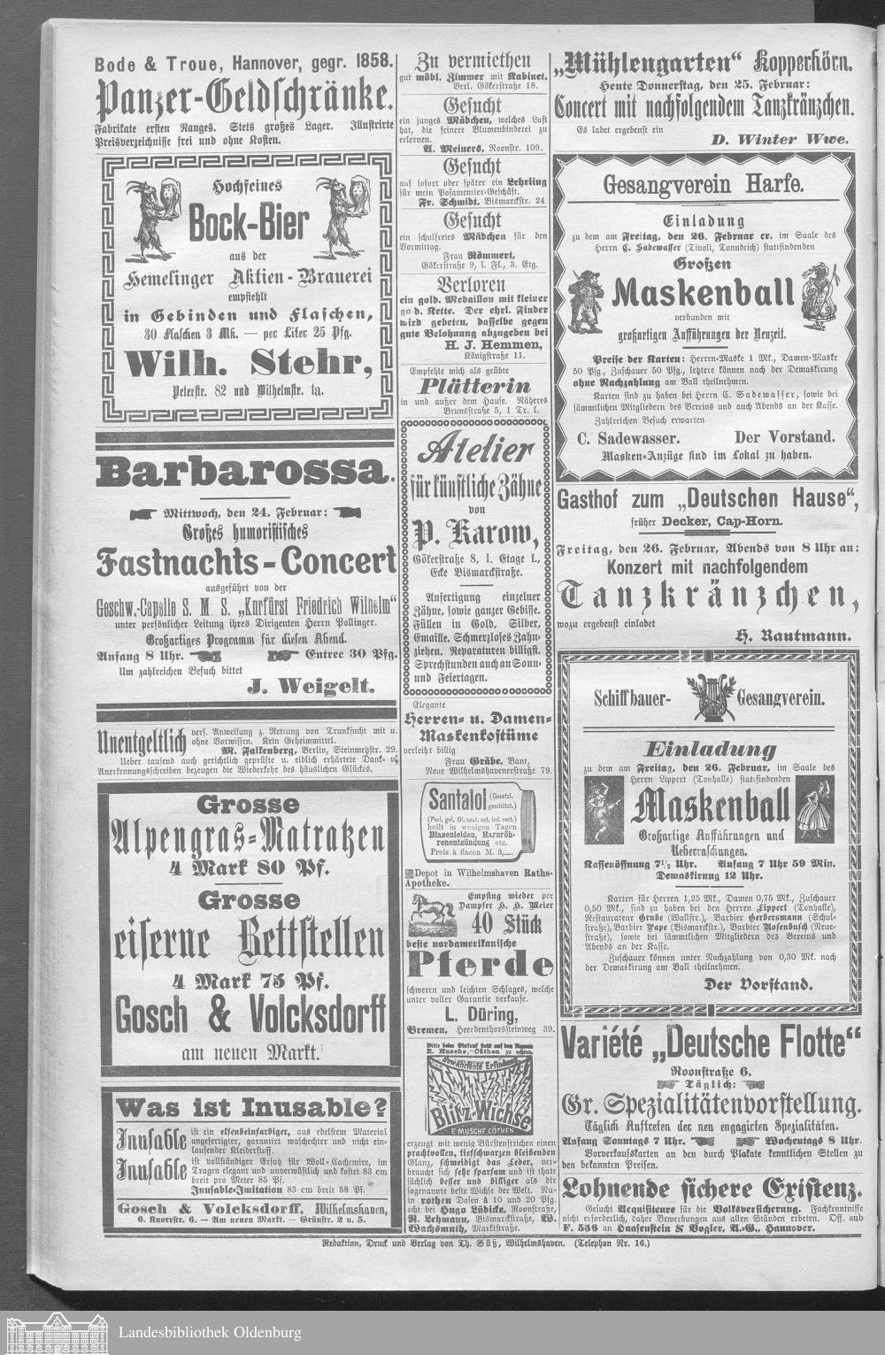 Wilhelmshavener Tageblatt und amtlicher Anzeiger. 1881-1909