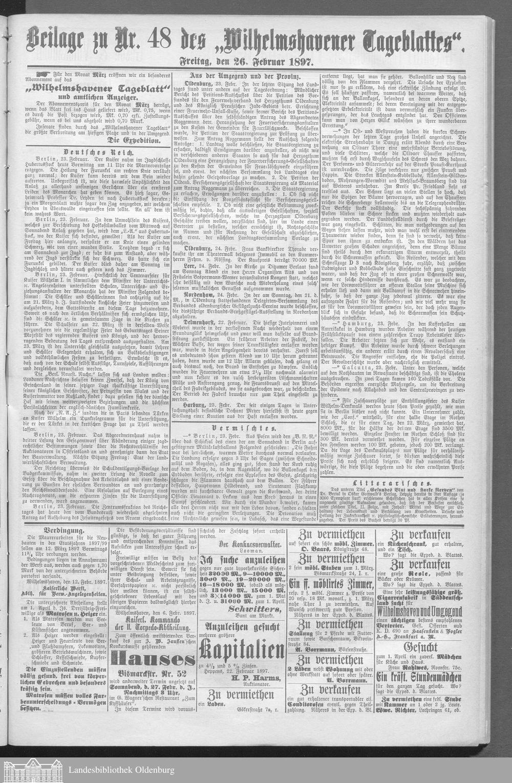 Wilhelmshavener Tageblatt und amtlicher Anzeiger....